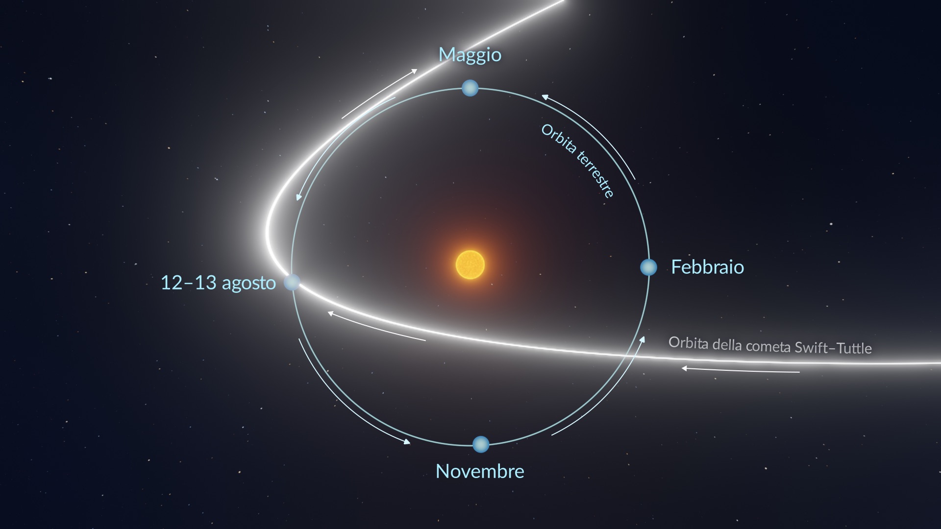Quando una cometa si avvicina al Sole, il calore ne fa sublimare la superficie ghiacciata, rilasciando polvere e gas. Questo materiale si distribuisce lungo l’orbita della cometa, formando un flusso di particelle. Quando la Terra attraversa questa scia, i frammenti penetrano nell’atmosfera e producono una pioggia di meteore.