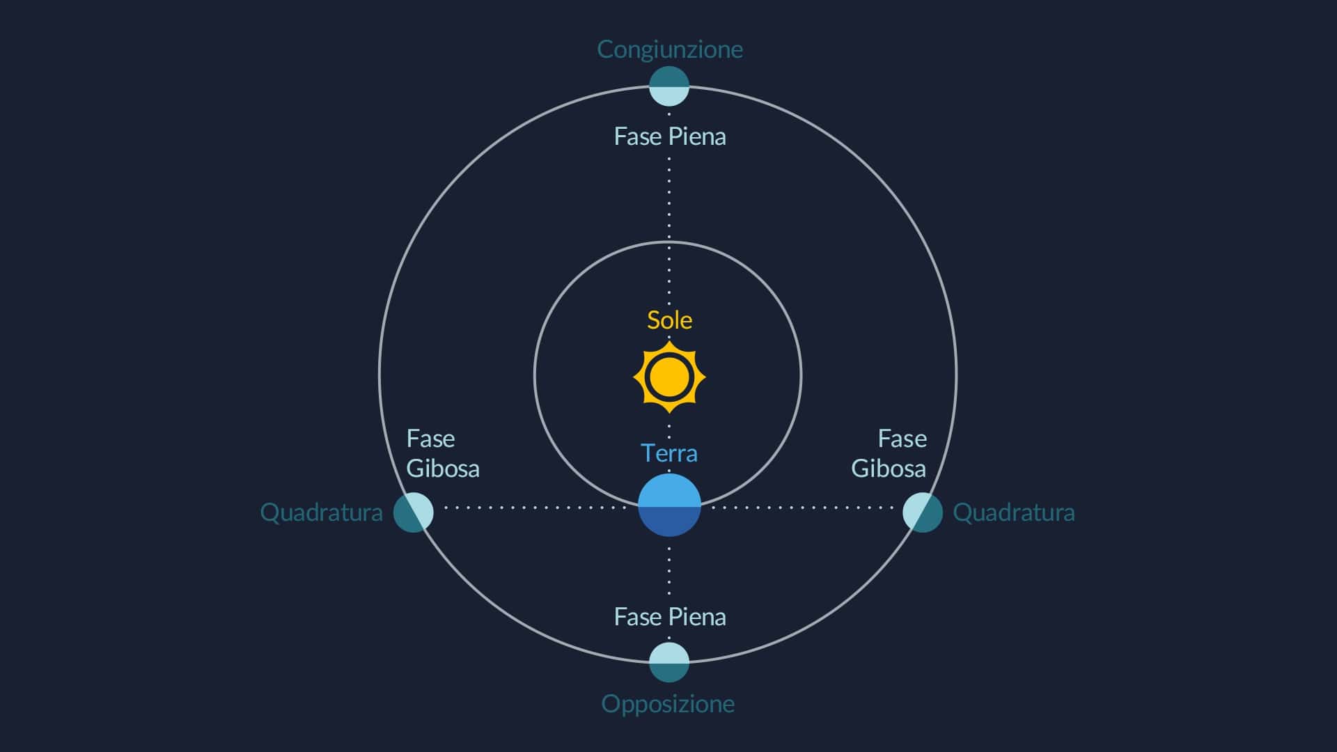 - La distanza di elongazione conta soprattutto per Mercurio e Venere, perché non si allontanano mai molto dal Sole.