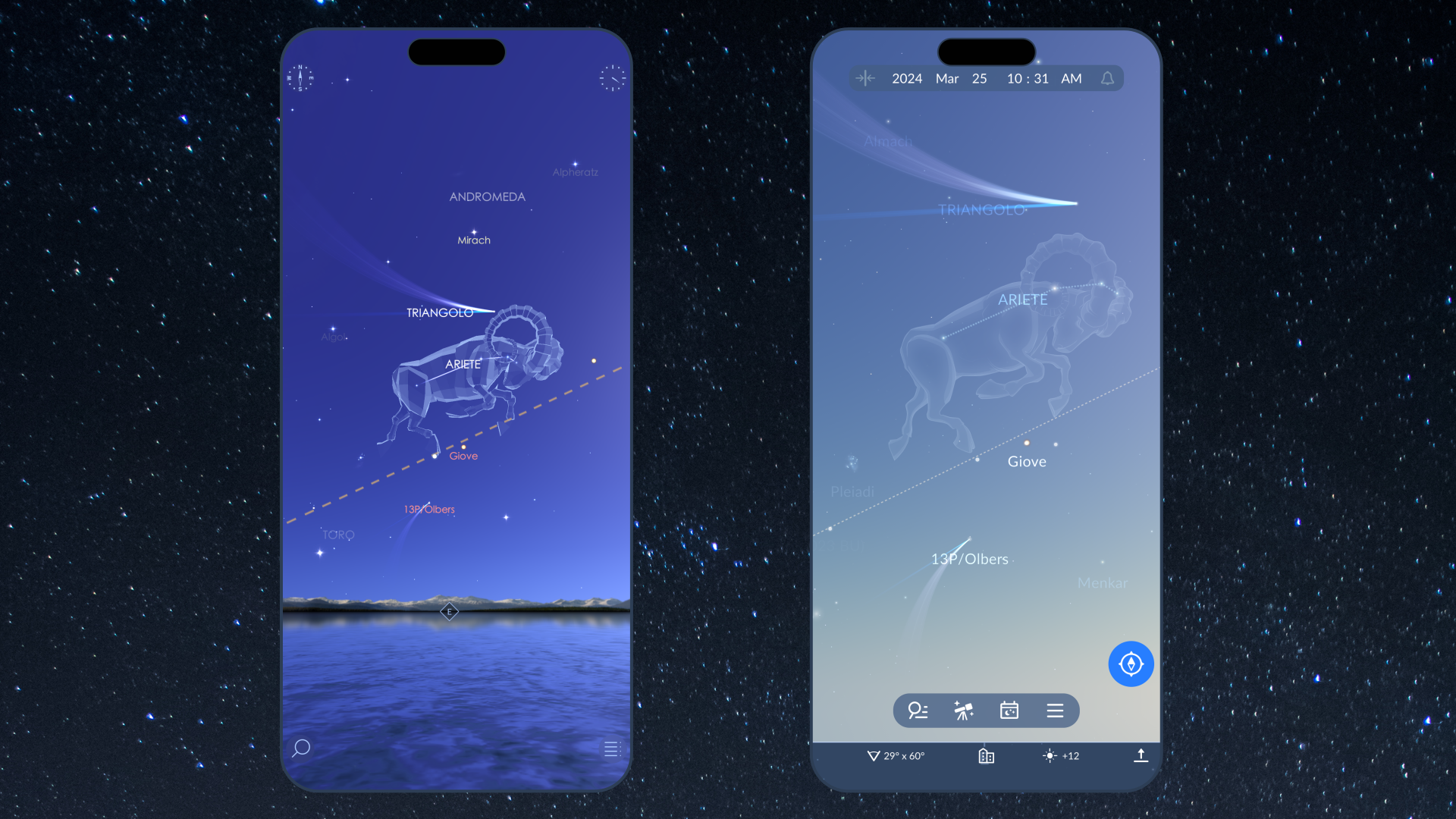 Le costellazioni zodiacali si trovano lungo il percorso del Sole nel cielo durante l’anno. Questo percorso è chiamato eclittica. Per trovarle di notte, osserva la stessa traiettoria che il Sole segue di giorno — da est a ovest. Tieni presente che non potrai vedere la costellazione che si trova dietro al Sole in quel momento. Usa l’app astronomica Sky Tonight per localizzare tutte le costellazioni zodiacali.