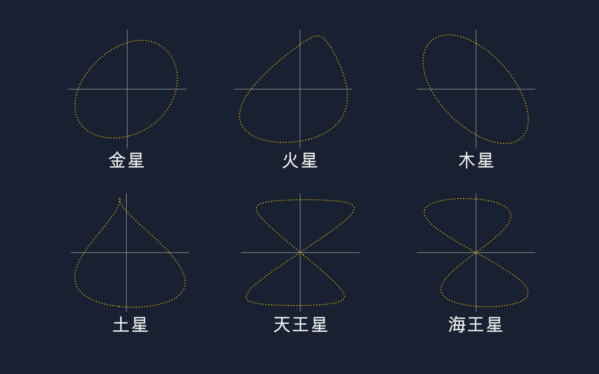 他の天体のカーブを作るには、太陽と同じ手順に従います。また、展開可能なパネルの下部にあるアイコンを使って設定を変更することもできます。