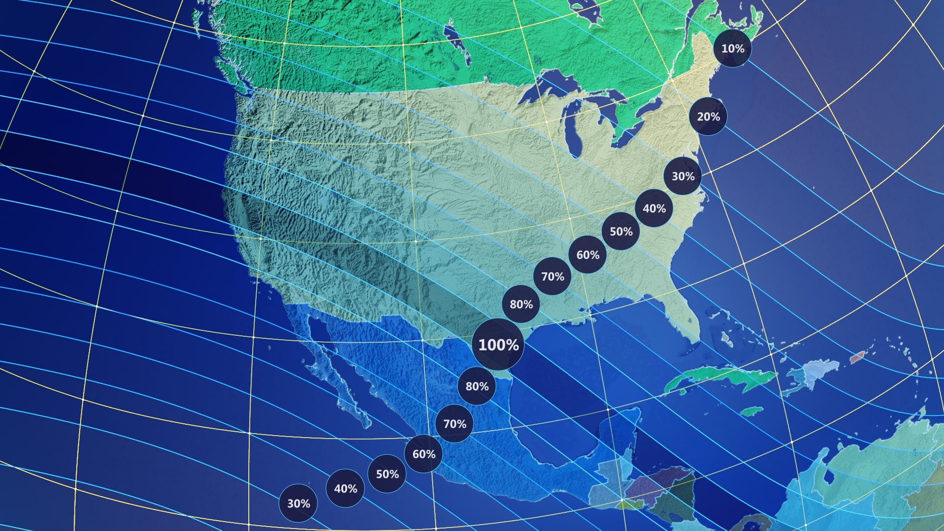 アラスカ北西部を除く北米全域で、少なくとも部分日食が見られます。アメリカでの金環日食2023年の進路は、オレゴン州からテキサス州に入り、カリフォルニア州、ネバダ州、ユタ州、ニューメキシコ州を通過します。カリブ海を横断した後、メキシコ上空を通過します。