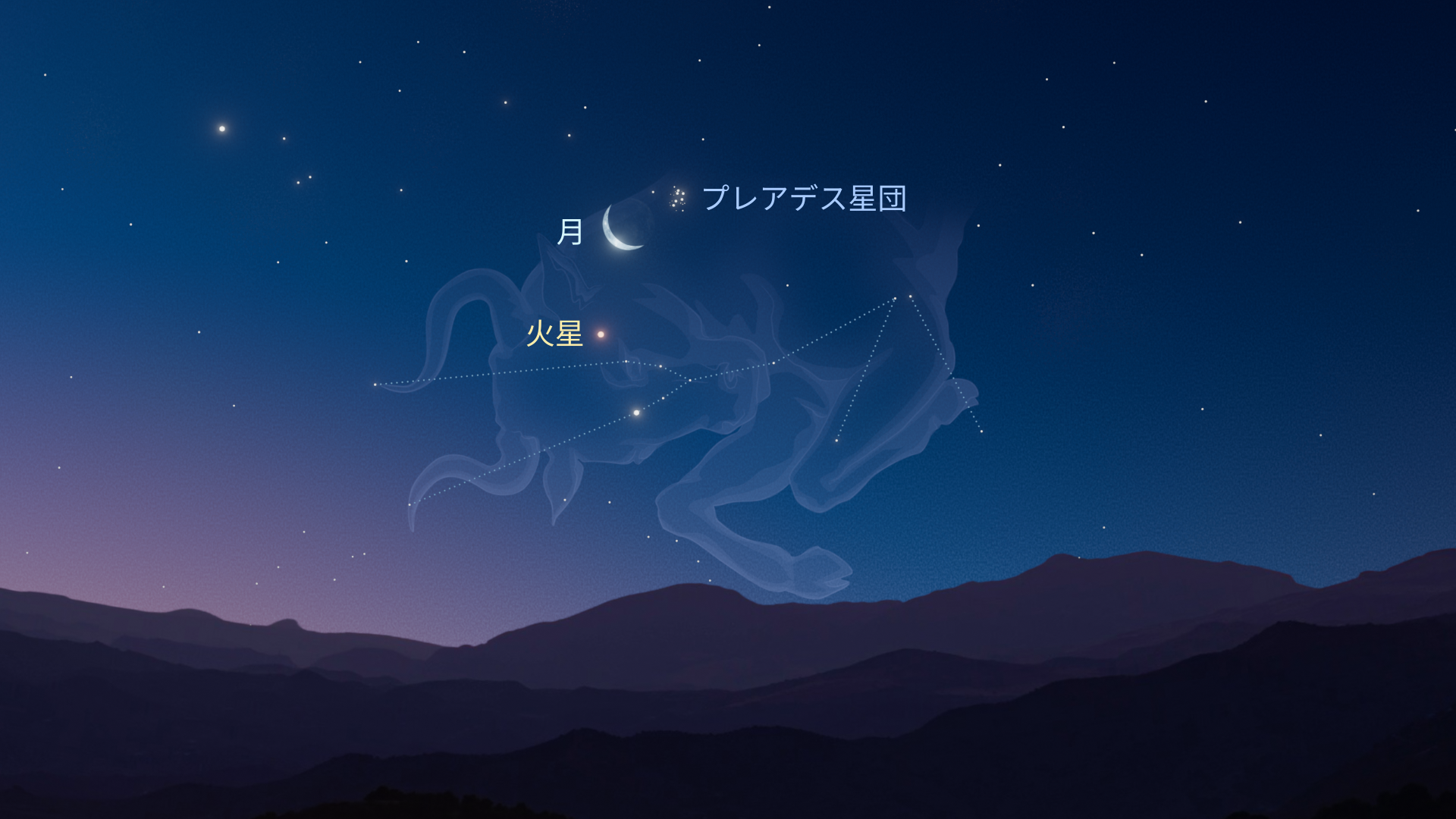 - 4月19日:月がプレアデス星団に接近