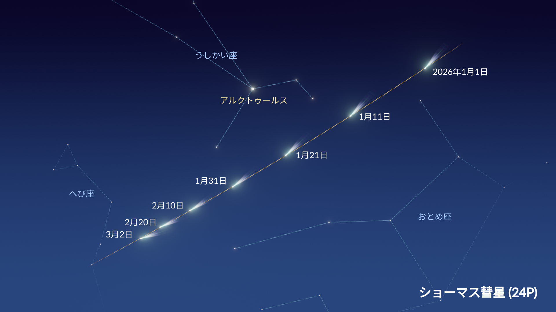 - 1月8日:24P/ショーマス彗星が近日点通過
