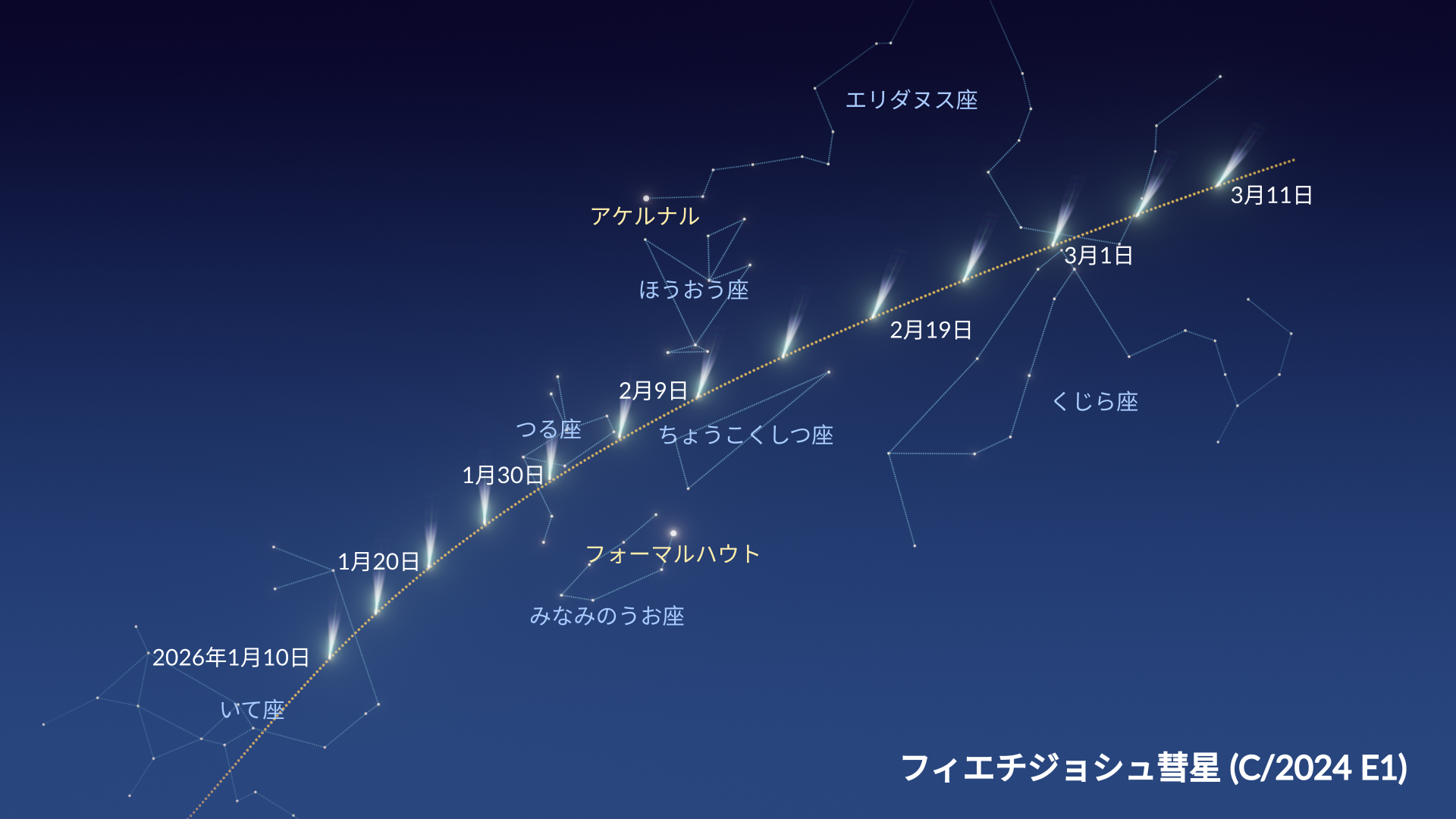 - 1月20日:C/2024 E1(ウィエルツホシュ)彗星が近日点通過 ⭐