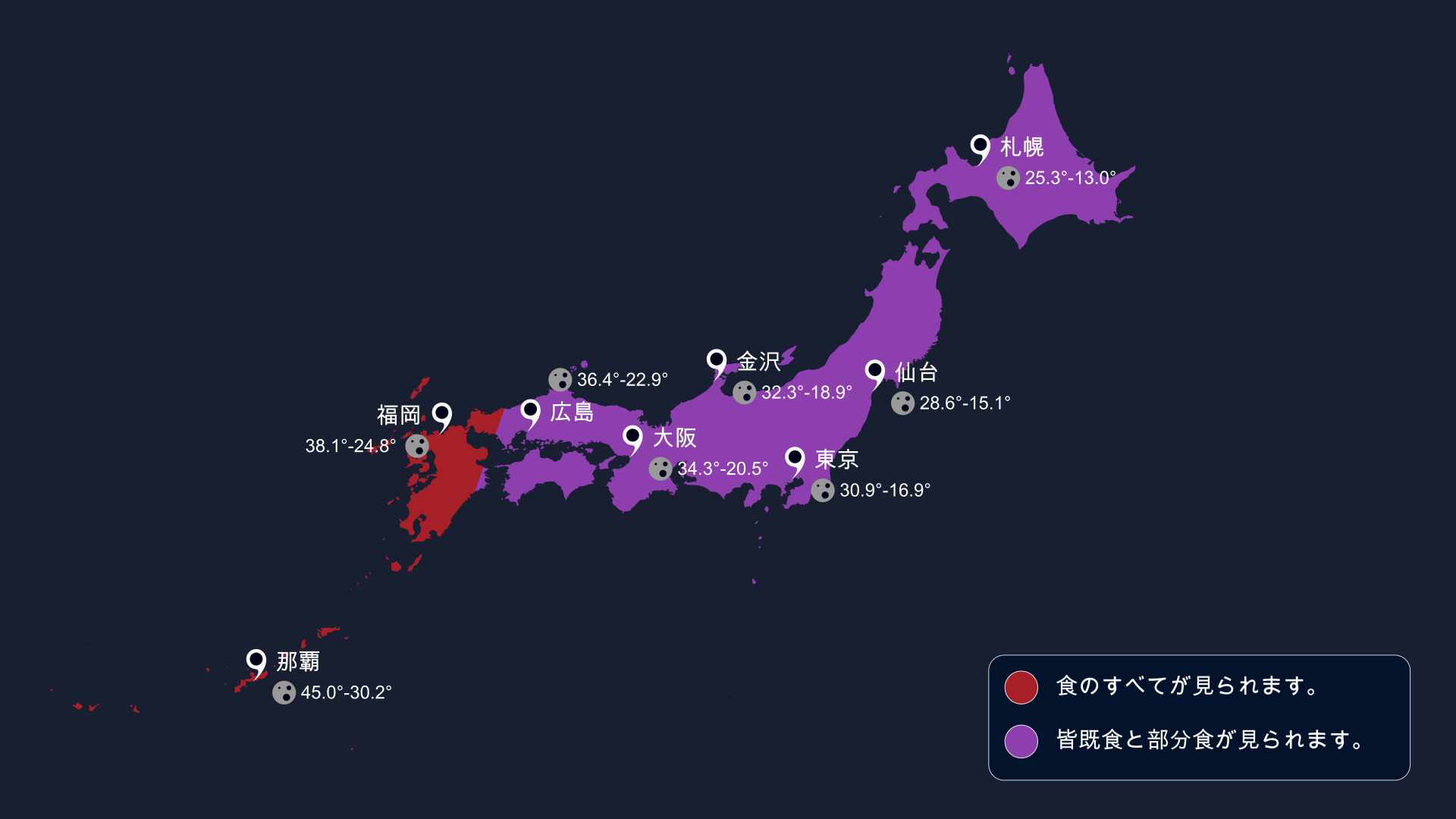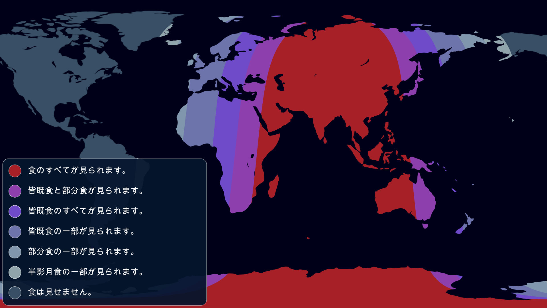 - 全過程が見える地域:日本、オーストラリアの一部、インド、中央アジア、ロシアの一部、東アフリカ
