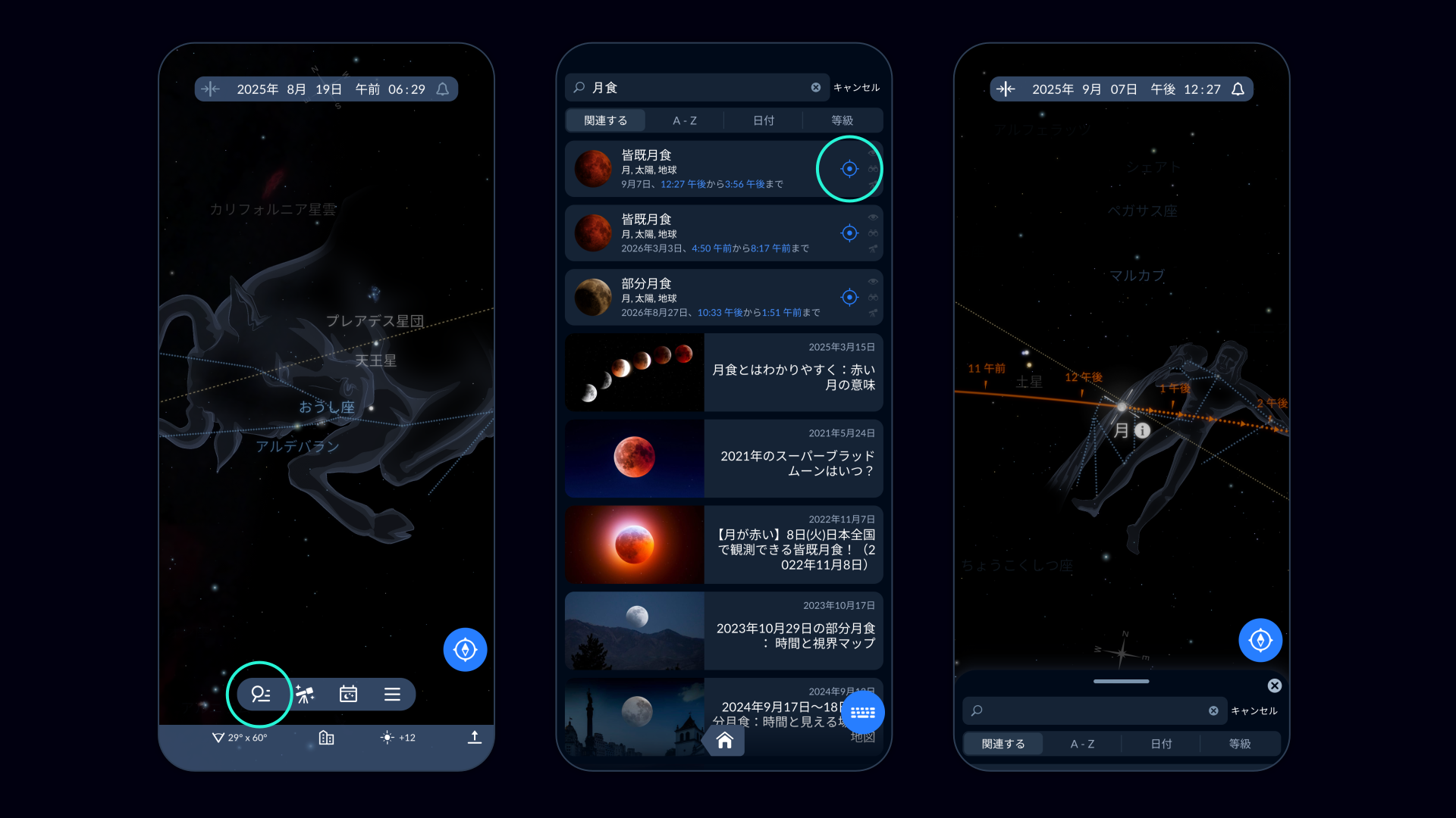 2025年9月の月食が、あなたの地域からどのように見えるかを事前に確認することができます。月食や日食は詳しく研究されており、科学者たちはその現象を高精度で計算・シミュレーションできます。現在では、多くのアプリやウェブサイトでこの情報が提供されています。