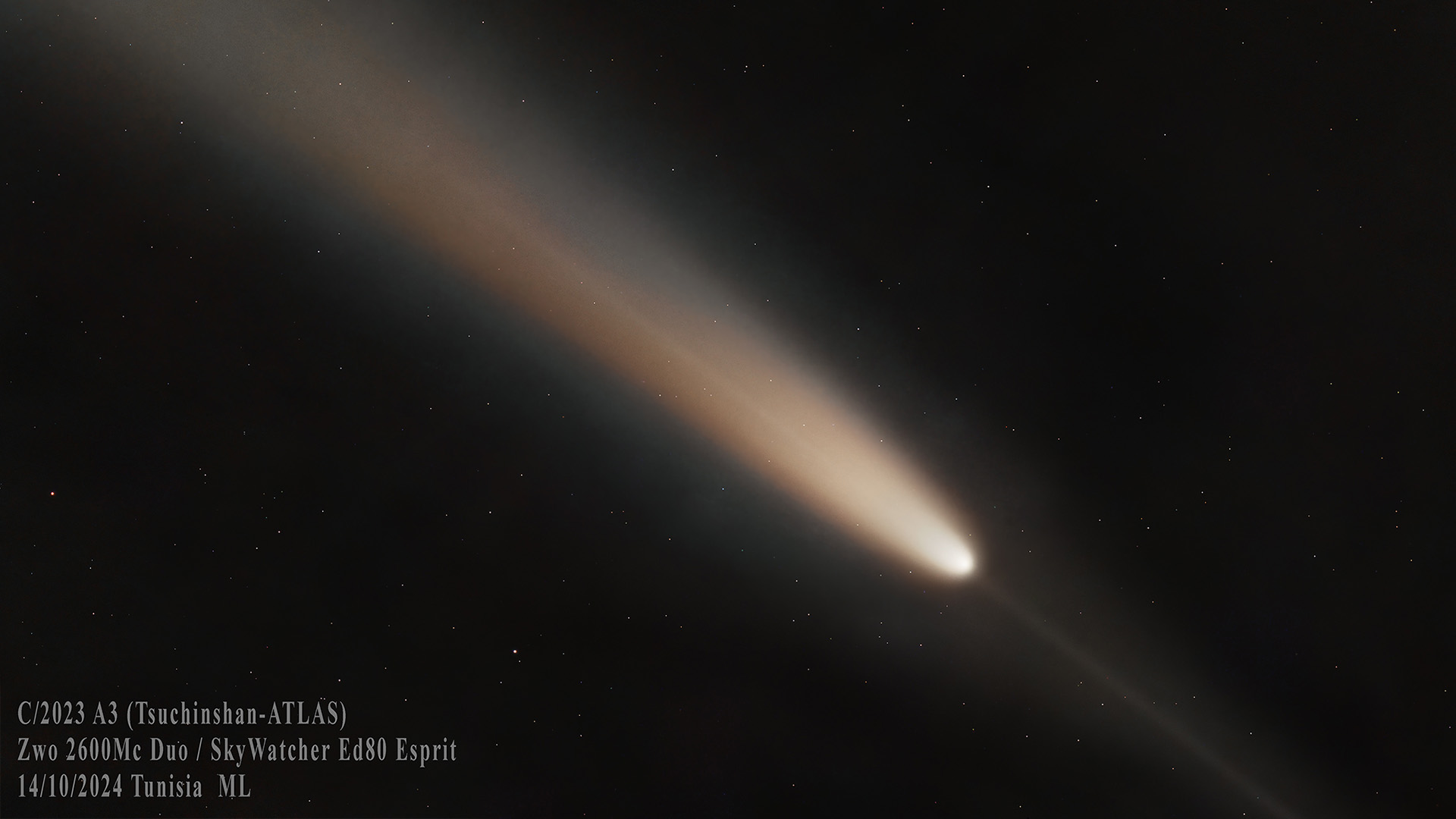 10月:10月12日、C/2023 A3は地球に最も接近し、0.47天文単位(7100万km)の距離にありました。このとき、彗星は最大光度に達し、肉眼で観測可能となりました。