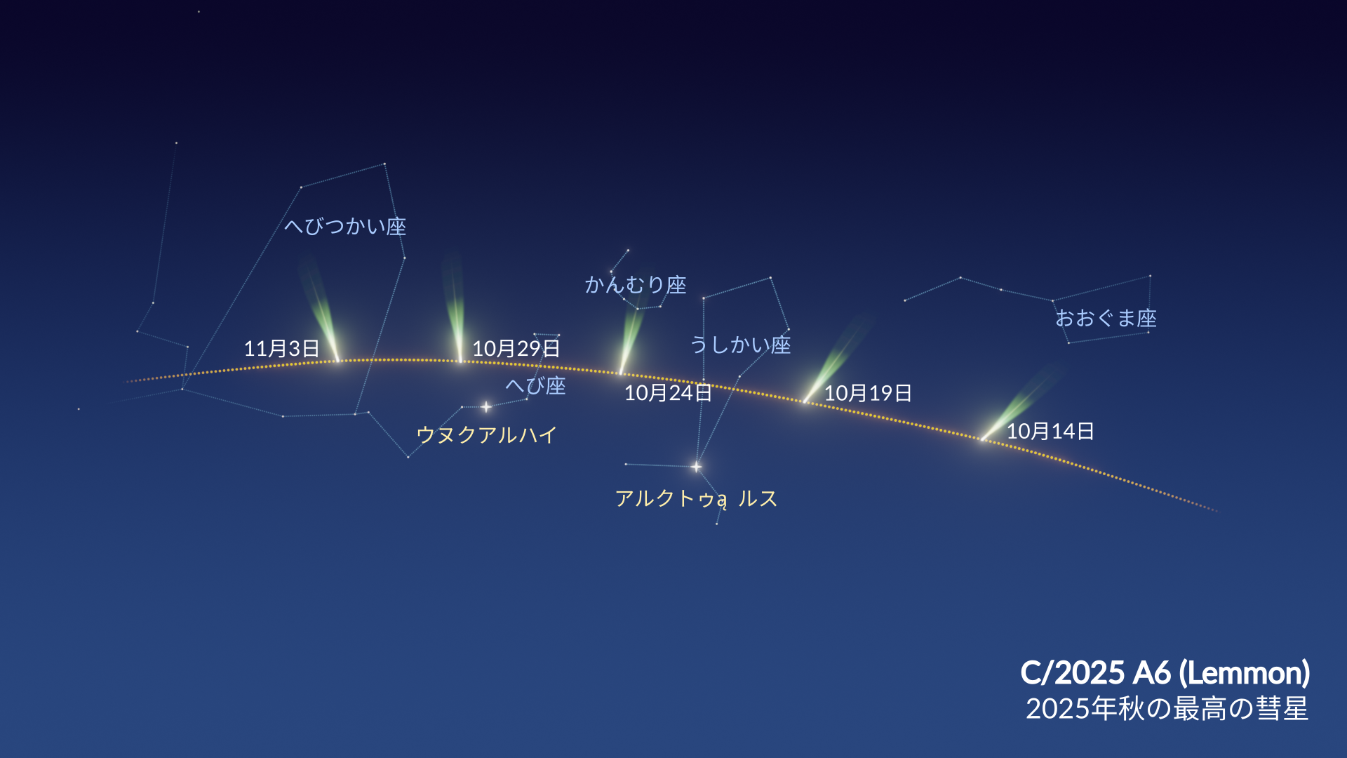 - 観測好機:北半球の10月下旬〜11月上旬