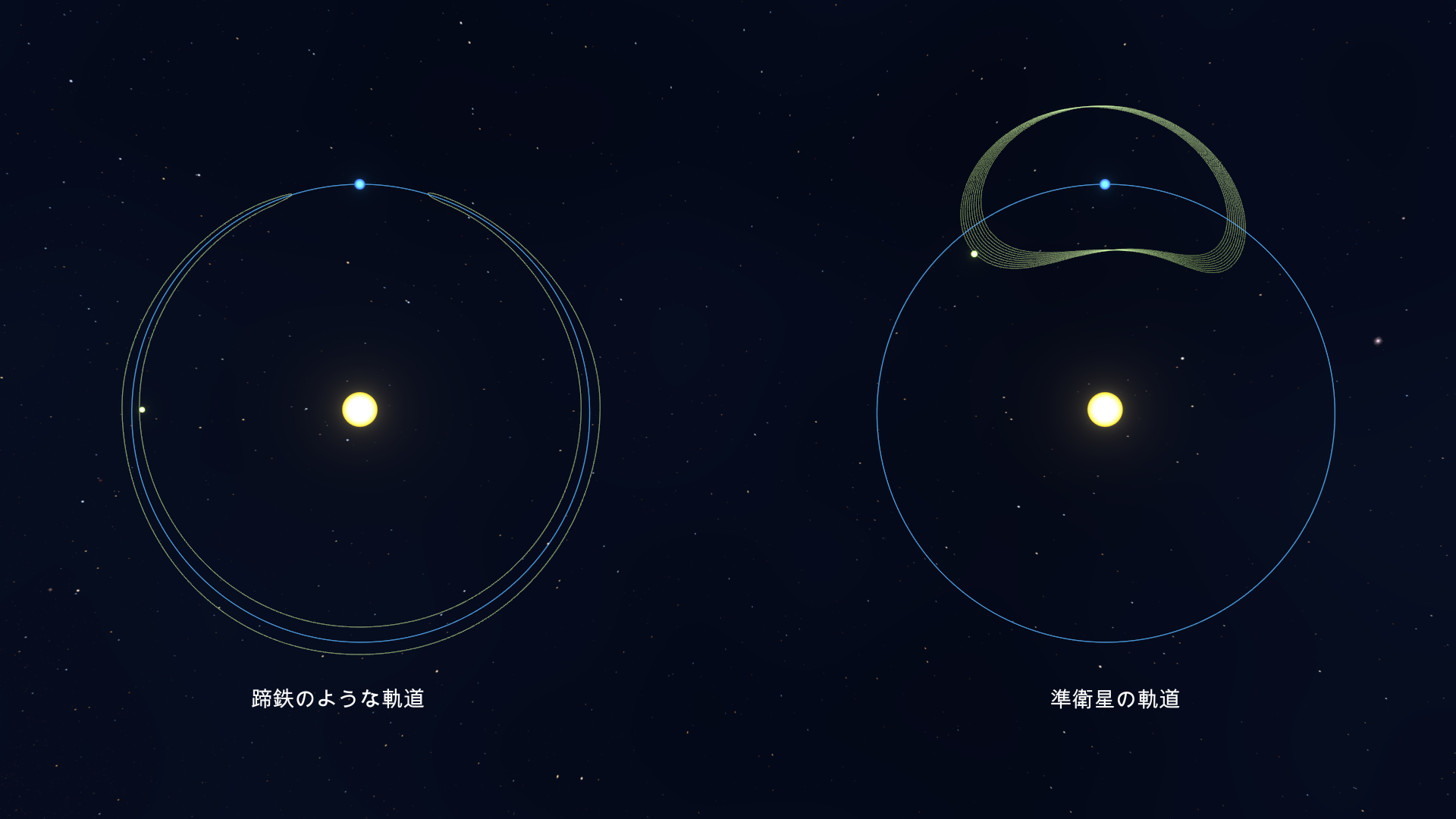 準衛星は、惑星の周りを直接周回するわけではありませんが、似たような経路をたどり、その惑星に対して安定した位置を保つ伴侶のような存在です。これはまさにクルースンのことのように思えますが、結論を急がないでください。2024年3月現在、地球には6つの準衛星があり、クルースンはその中に含まれていません。理由は、準衛星は通常、惑星の周りに長細いループを描くように見えるためです。前述のように、クルースンの地球周りの経路は馬蹄形に似ています。しかし、数世紀後には準衛星軌道に変わる可能性もあります。研究によると、これらのシフト(馬蹄形軌道から準衛星軌道への変化とその逆)は、地球の共軌道小惑星の間で非常に一般的であることが示されています。たとえば、現在地球の準衛星の一つである小惑星Kamoʻoalewaは、これらの配置を繰り返し変更しています。