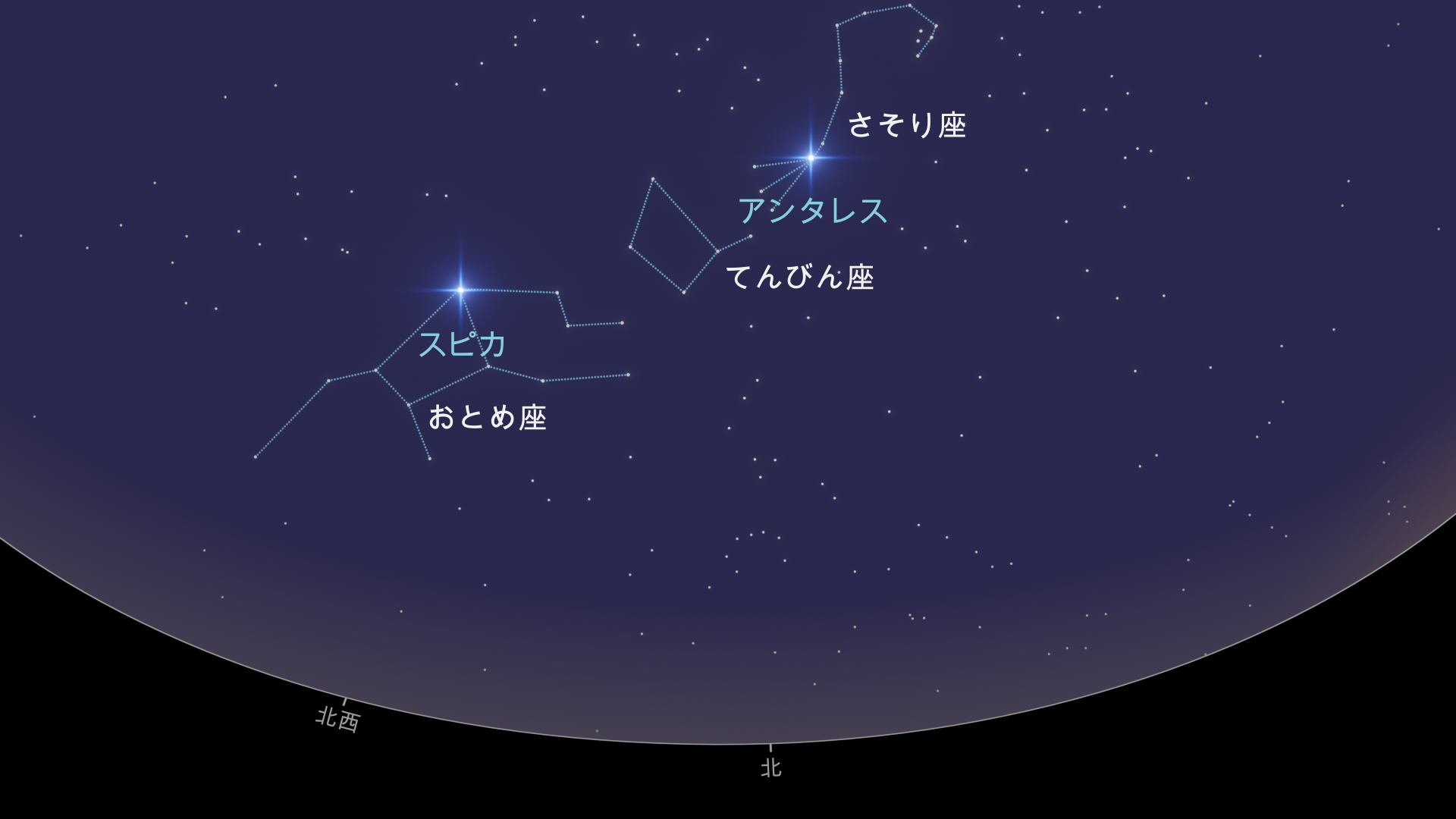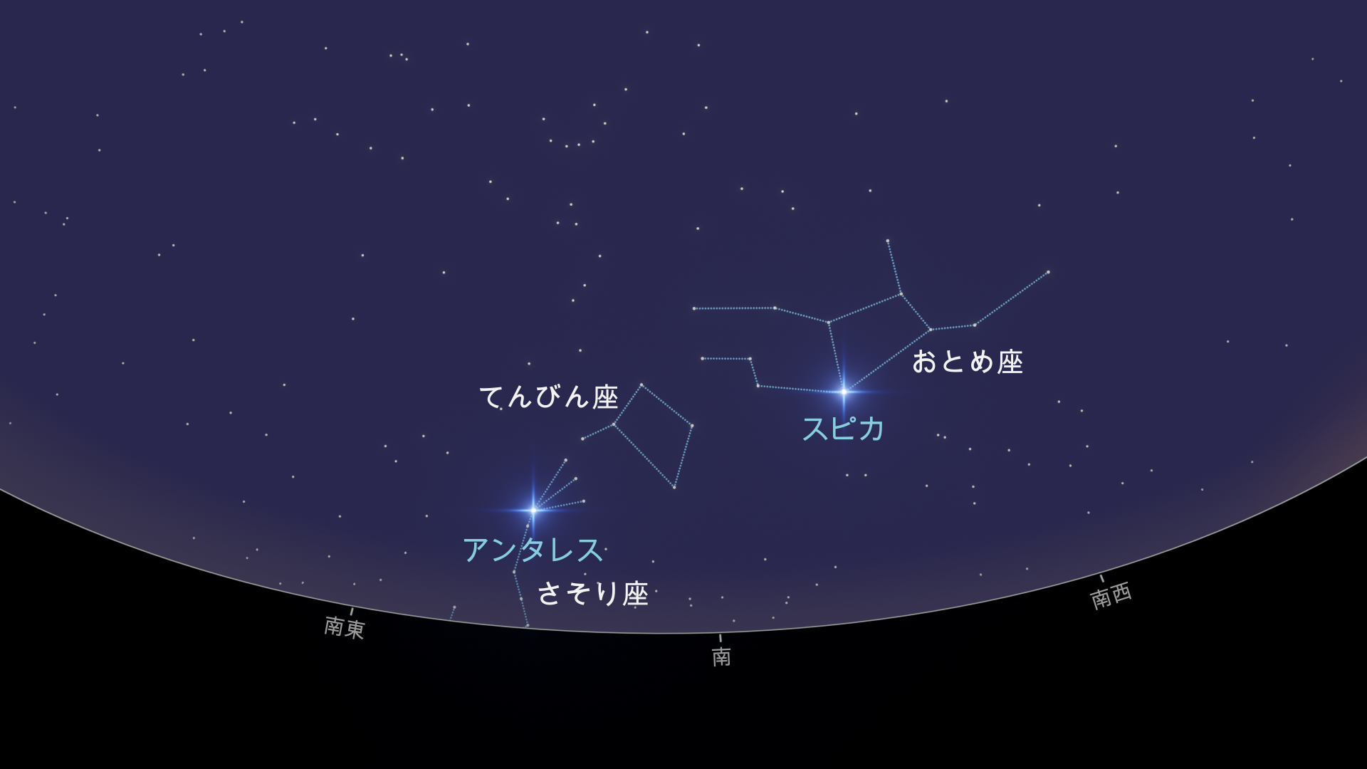 てんびん座は大きな星座ですが、星がやや暗いため、はっきり見たいときは光害の少ない場所へ行くのがおすすめです。