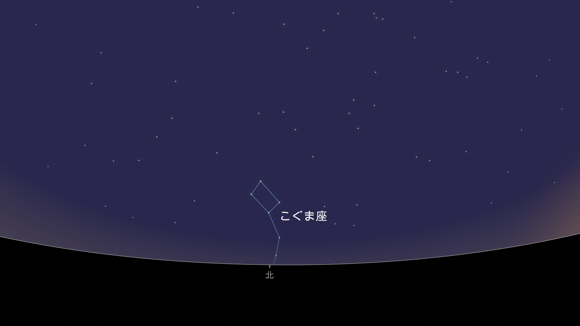 こぐま座は小さなおたま形をしていて、柄の先端がポラリスです。北斗七星のミニチュア版のように、ポラリスから南側へ弧を描いています。
