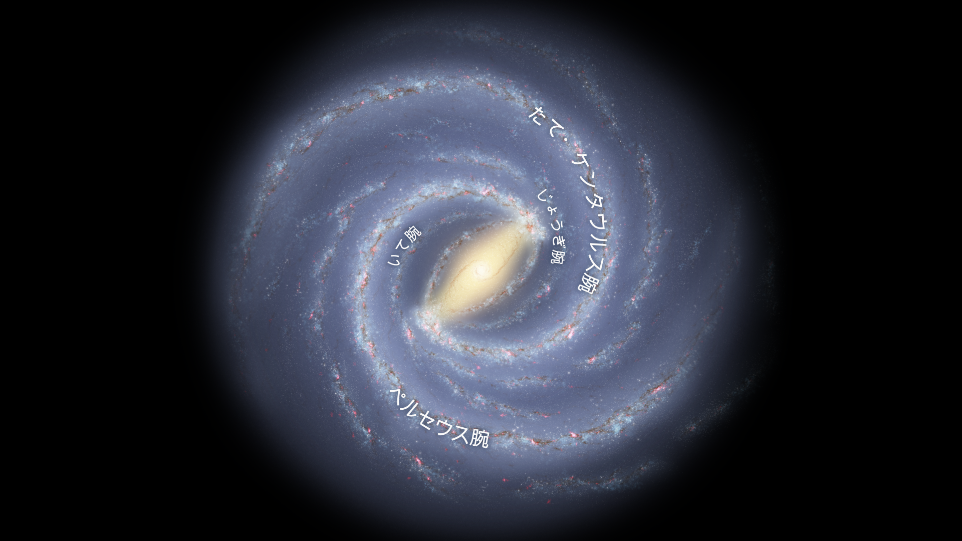 具体的には、天の川銀河は棒渦巻銀河であり、恒星で構成された中心部分にの棒状の構造を持っています。この棒は中央に銀河の核を含み、その端に2つの渦状腕が取り付けられています。天の川が通常の渦巻銀河であったら、アンドロメダ銀河のようにその腕はその中心に直接つながりました。