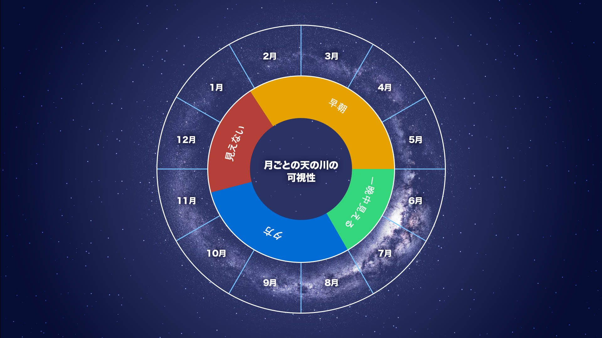 - 北半球では、天の川シーズンは3月から10月まで。