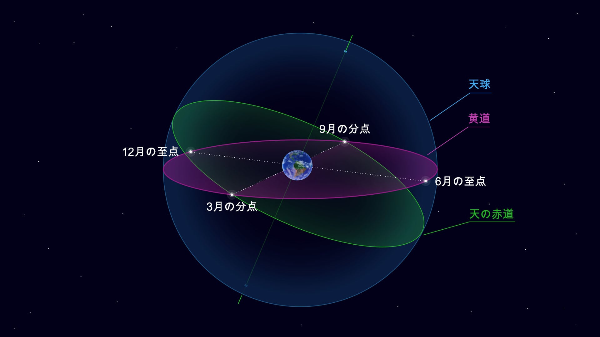 年に2回、6月21日と12月21日の前後に至点があります。北半球では、6月の至点を夏至、12月の至点を冬至と呼びます。南半球ではその逆です。