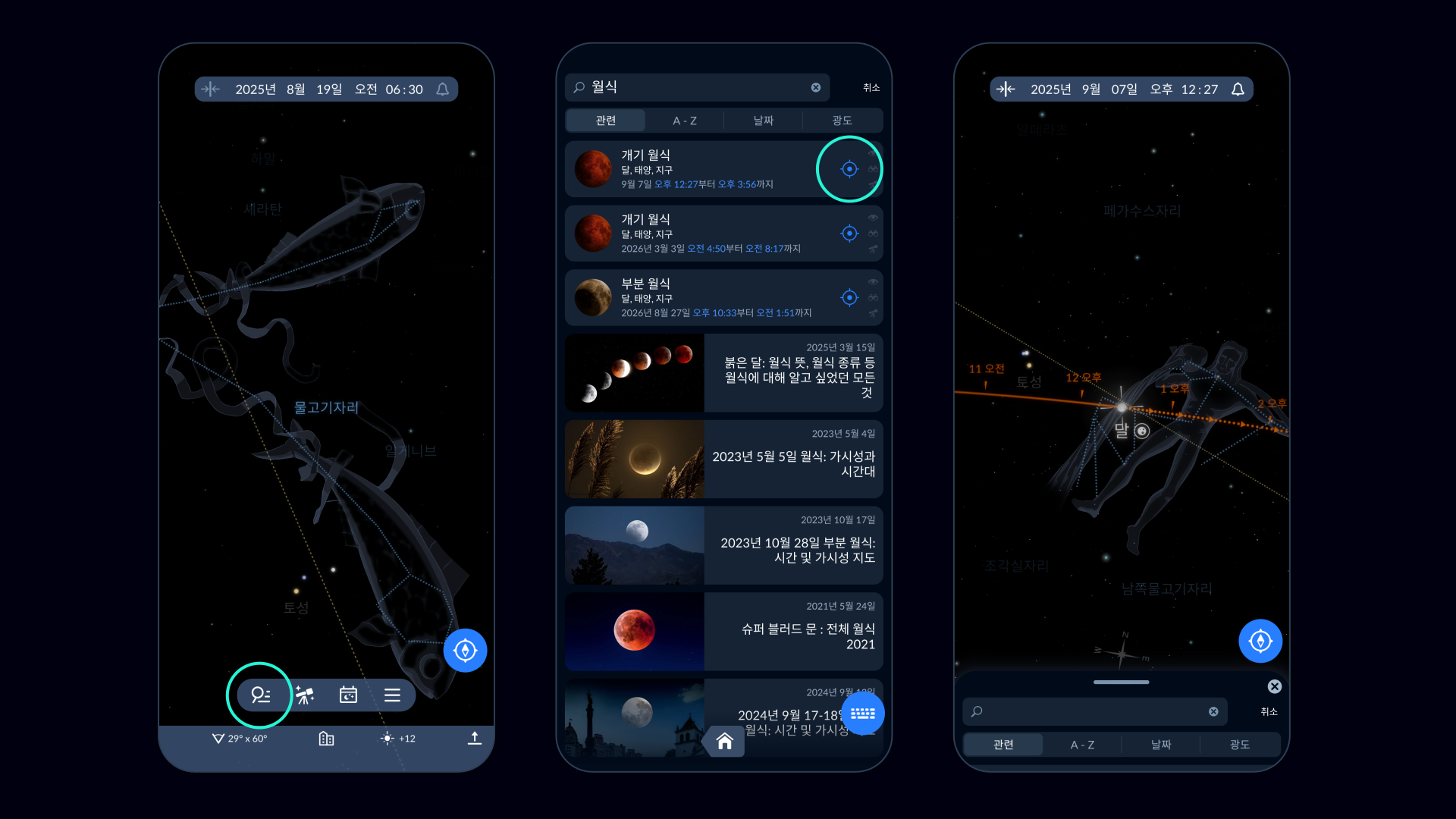 2025년 9월 7일과 8일에 관측되는 블러드 문은 10년 동안 가장 널리 관측 가능한 월식 중 하나가 될 것입니다. 60억 명이 넘는 사람들이 이 개기월식을 온전히 관측할 수 있는 이 기록적인 천문 현상은 절대 놓쳐서는 안 될 것입니다! 무료 Sky Tonight 앱을 사용하여 현재 위치에서의 월식 관측 시간을 확인하고 미리 관측 계획을 세우세요.