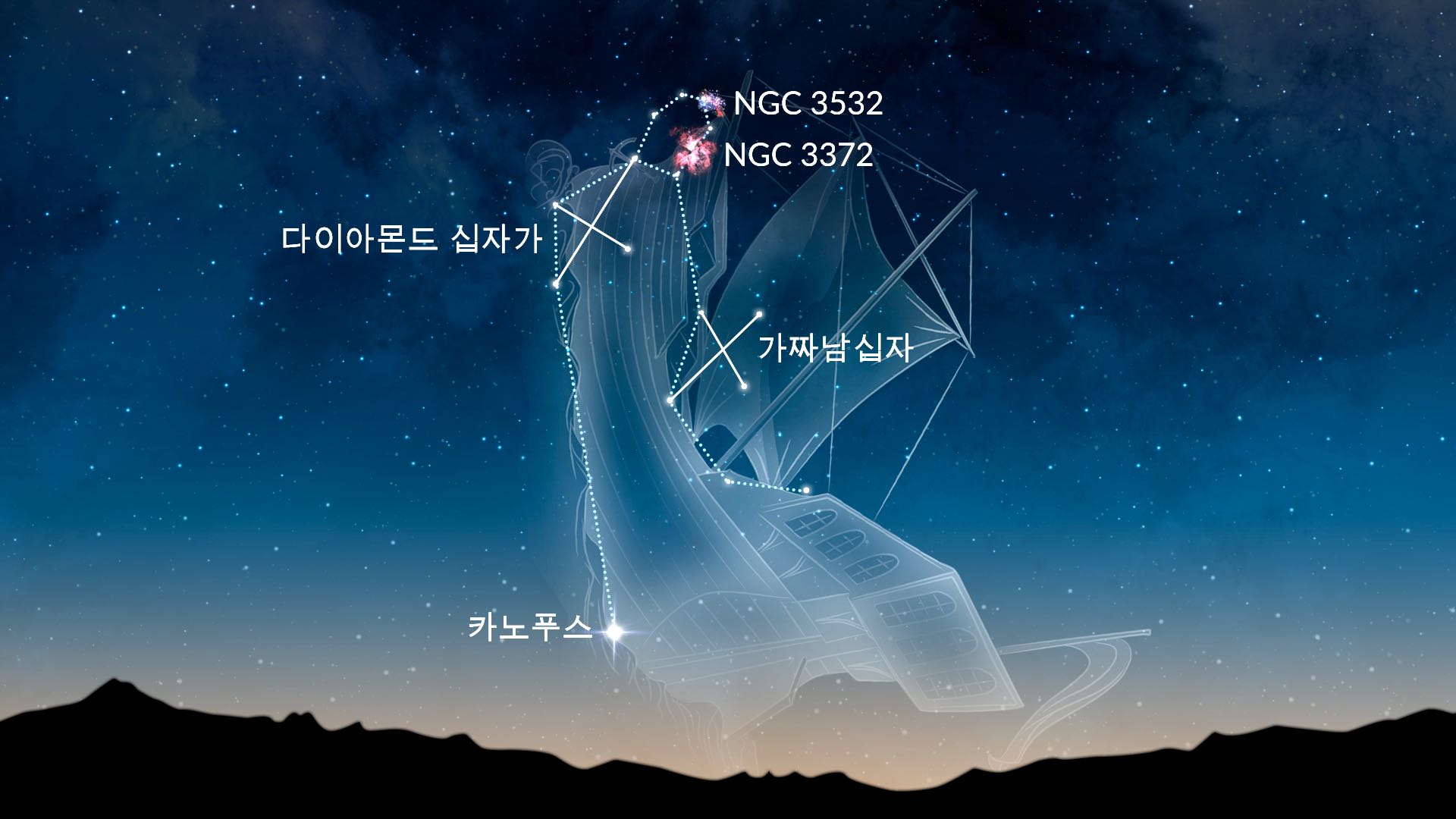 남반구의 별자리에 관한 기사에서 용골자리, 남십자자리, 켄타우로스자리에 대해서도 논의했습니다.