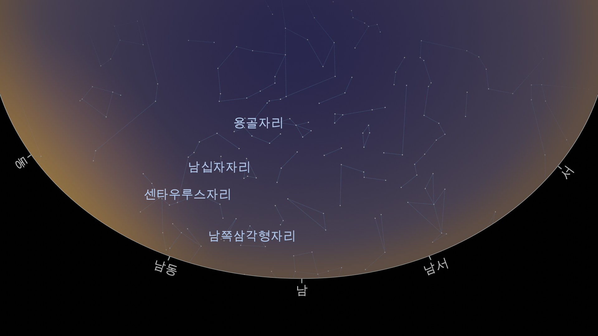 남반구의 2월 밤하늘 지도