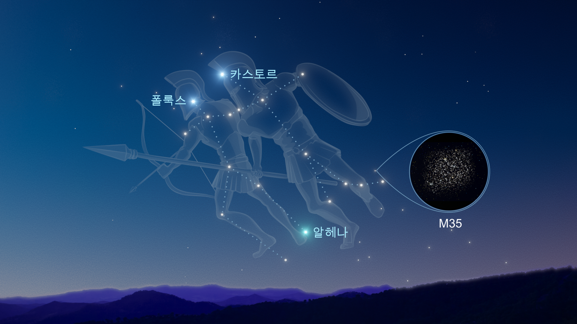 - 주목할 만한 심우주 천체: 슈버클 성단 (M35, 5.1등급)