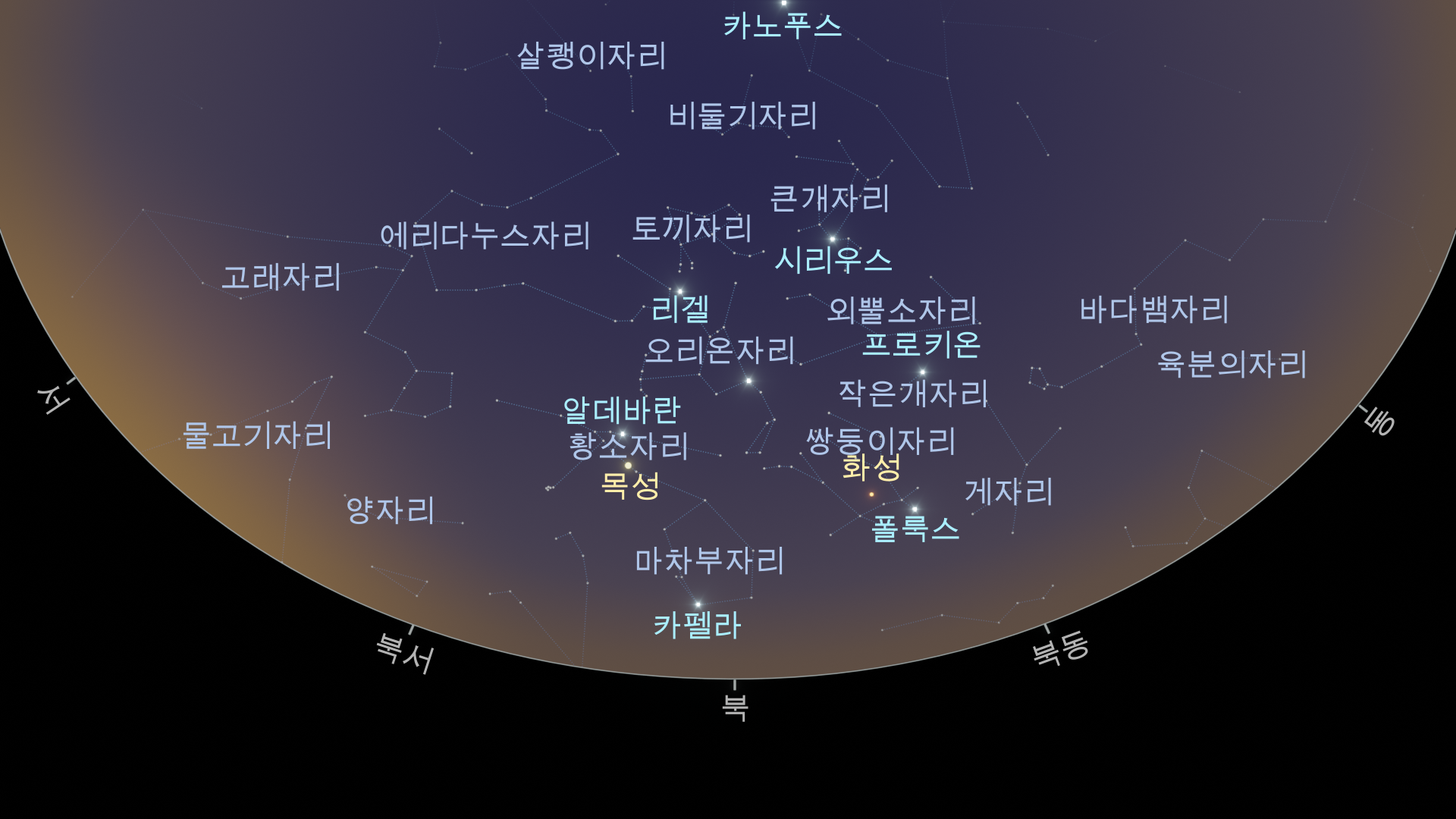 북반구의 2월 밤하늘 지도