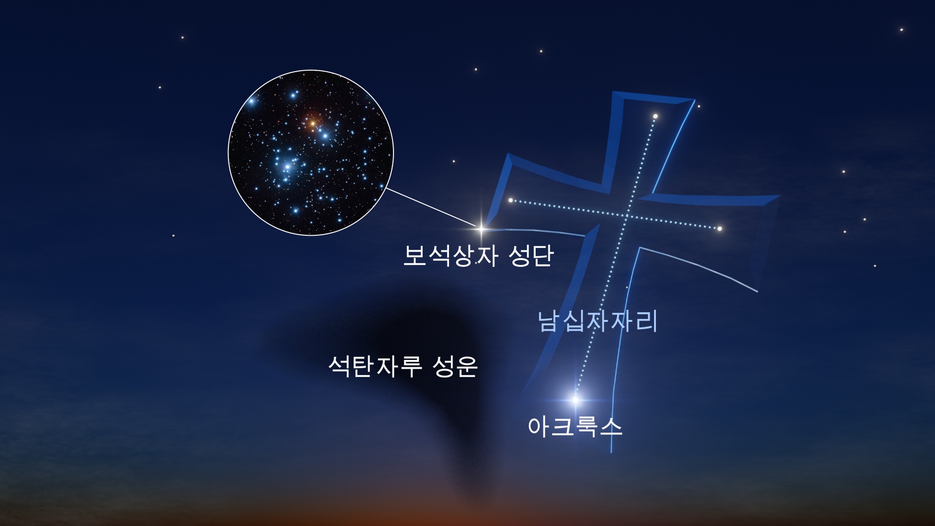 - 가을: 남십자자리 - 센타우루스자리 - 용골자리