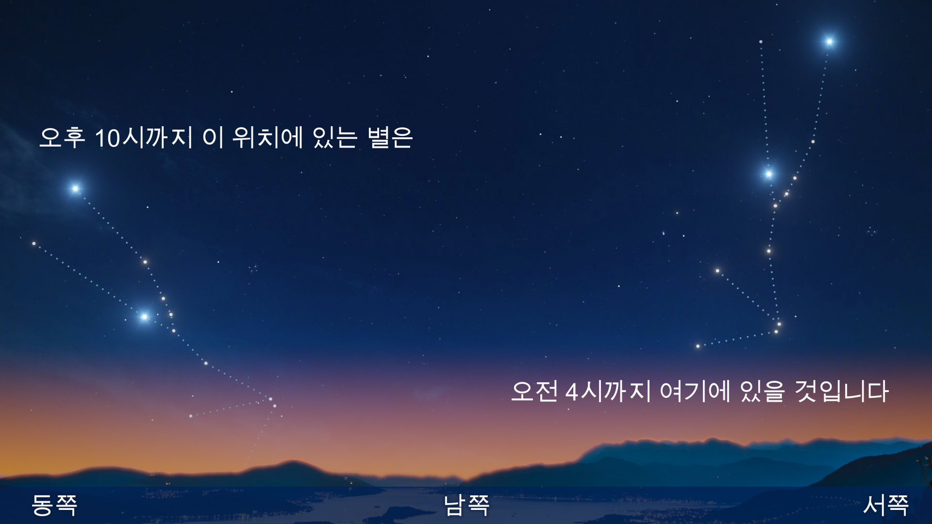 - ☆: 별자리를 보려면 쌍안경이 필요할 수 있습니다.
