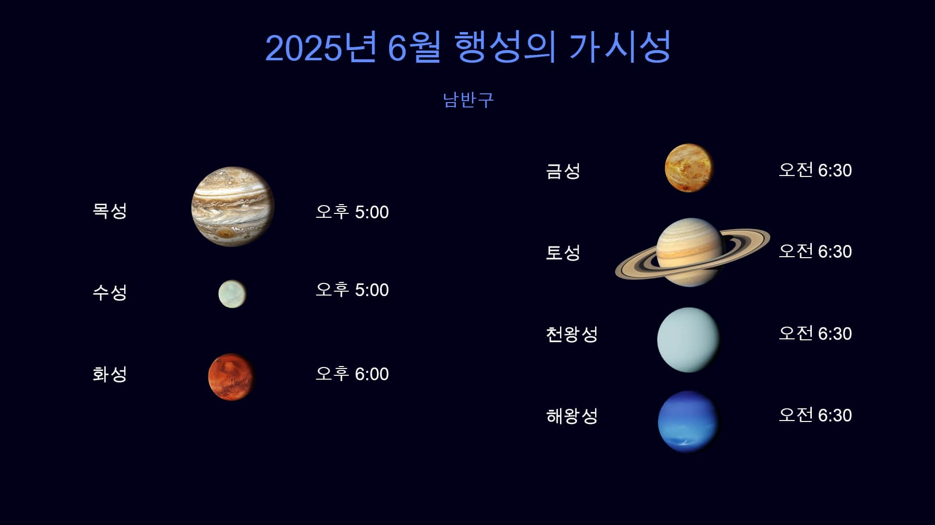남반구에서 관측 가능한 행성 – 2025년 6월