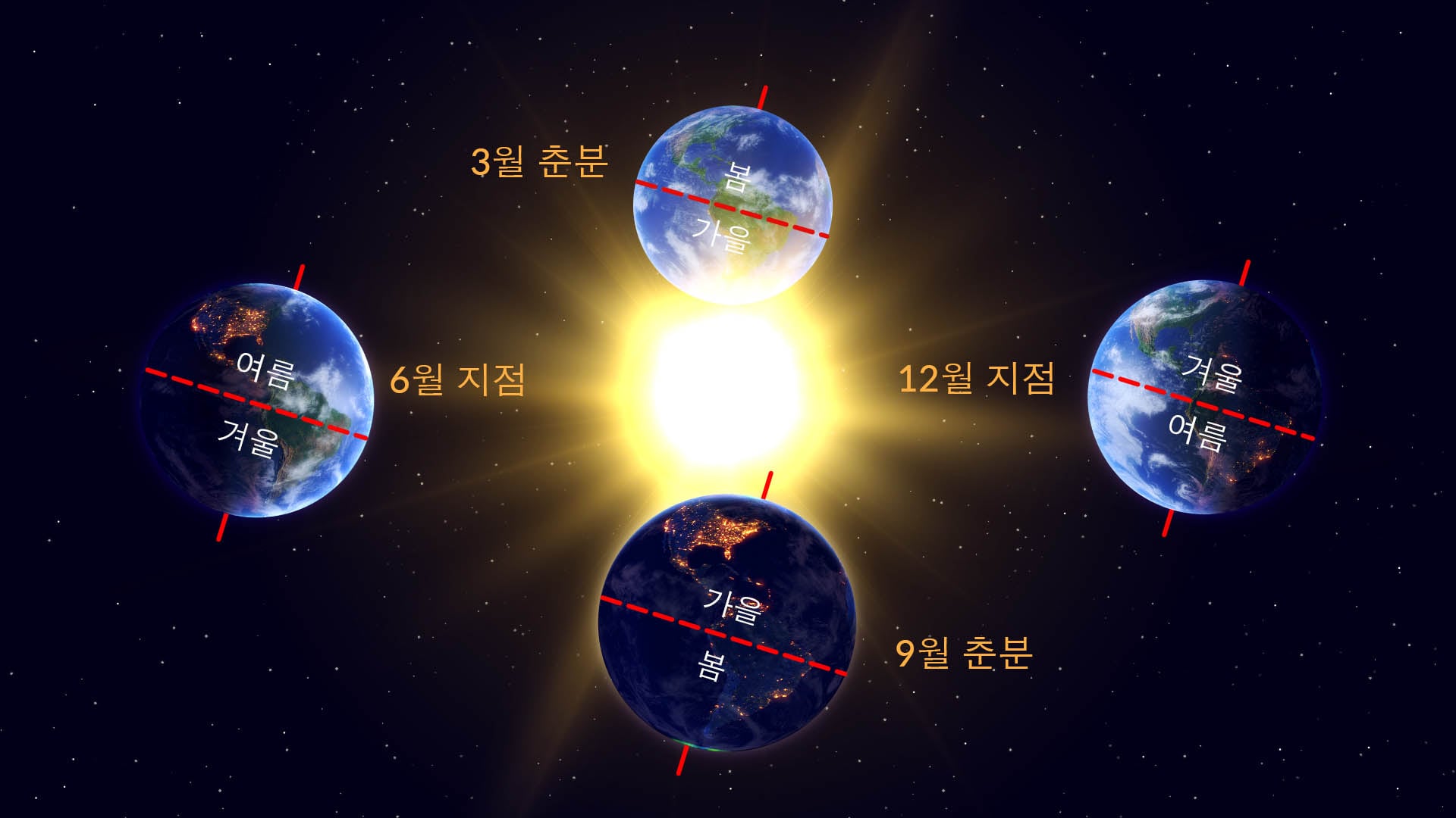 태양으로부터 가장 멀리 기울어진 남반구에서는 그 반대가 일어납니다. 이곳에서 사람들은 일년 중 낮이 가장 짧고 밤이 가장 긴 동지, 즉 겨울의 첫날을 맞이하는 동지를 경험하게 될 것입니다.