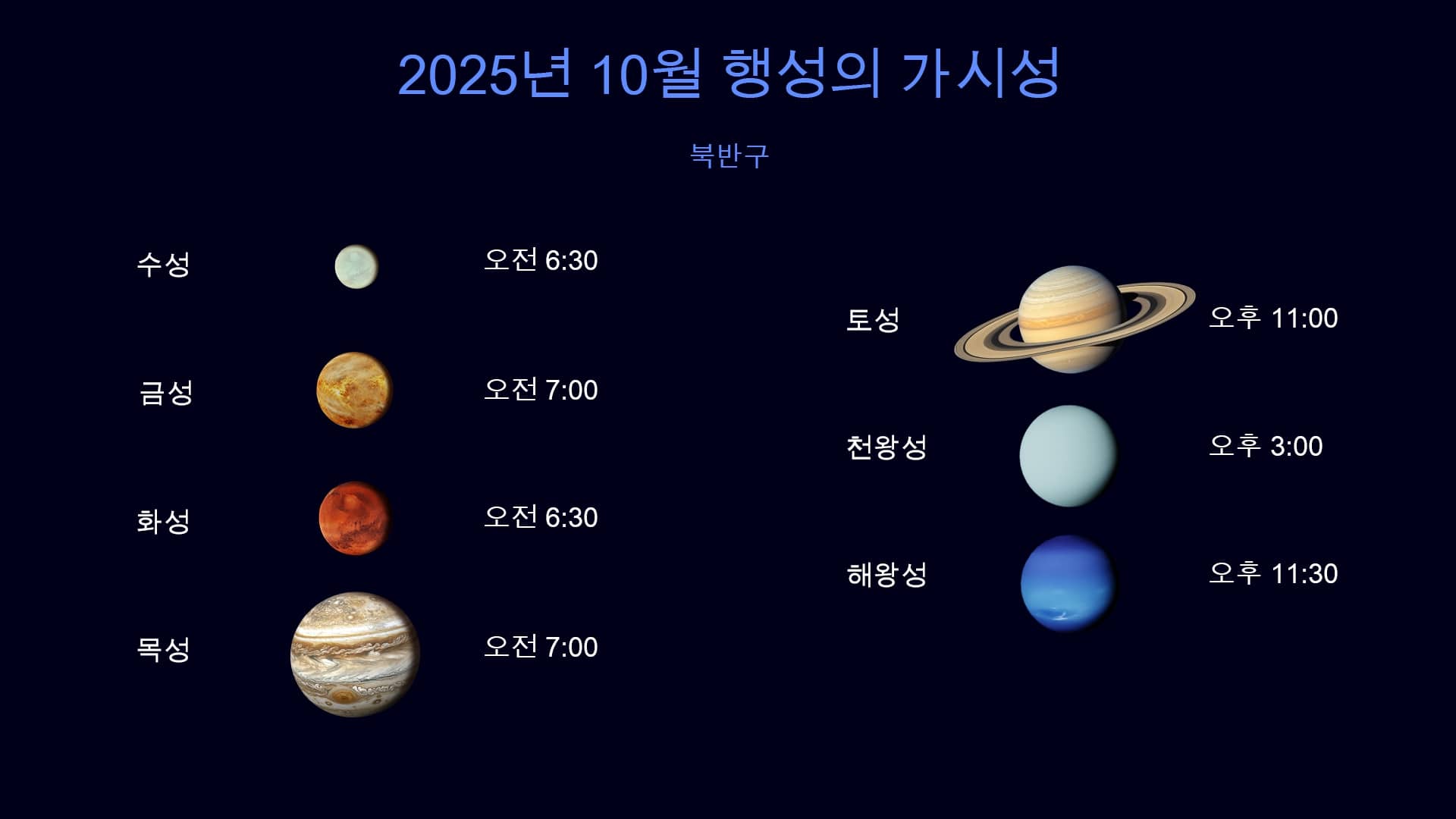 북반구에서 볼 수 있는 행성 – 2025년 10월