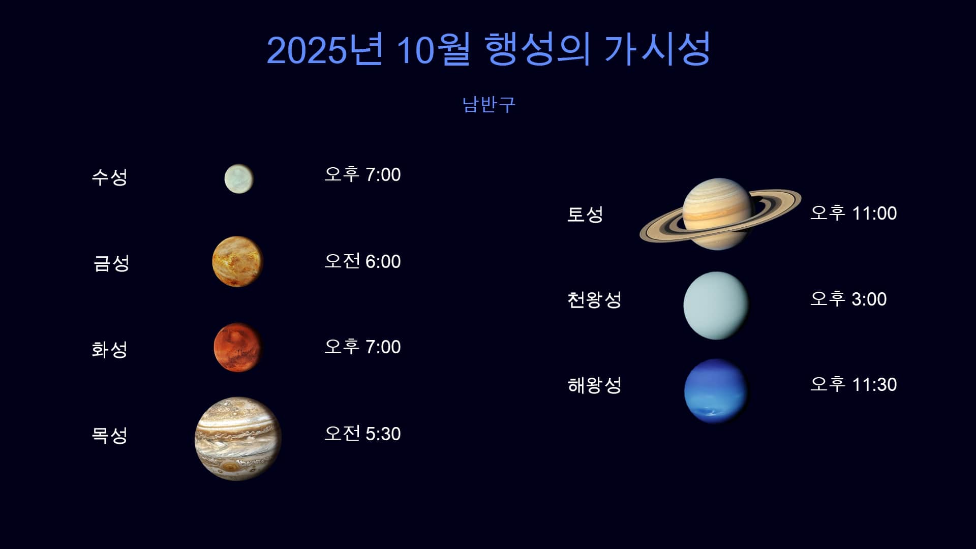 남반구에서 관측 가능한 행성 – 2025년 10월