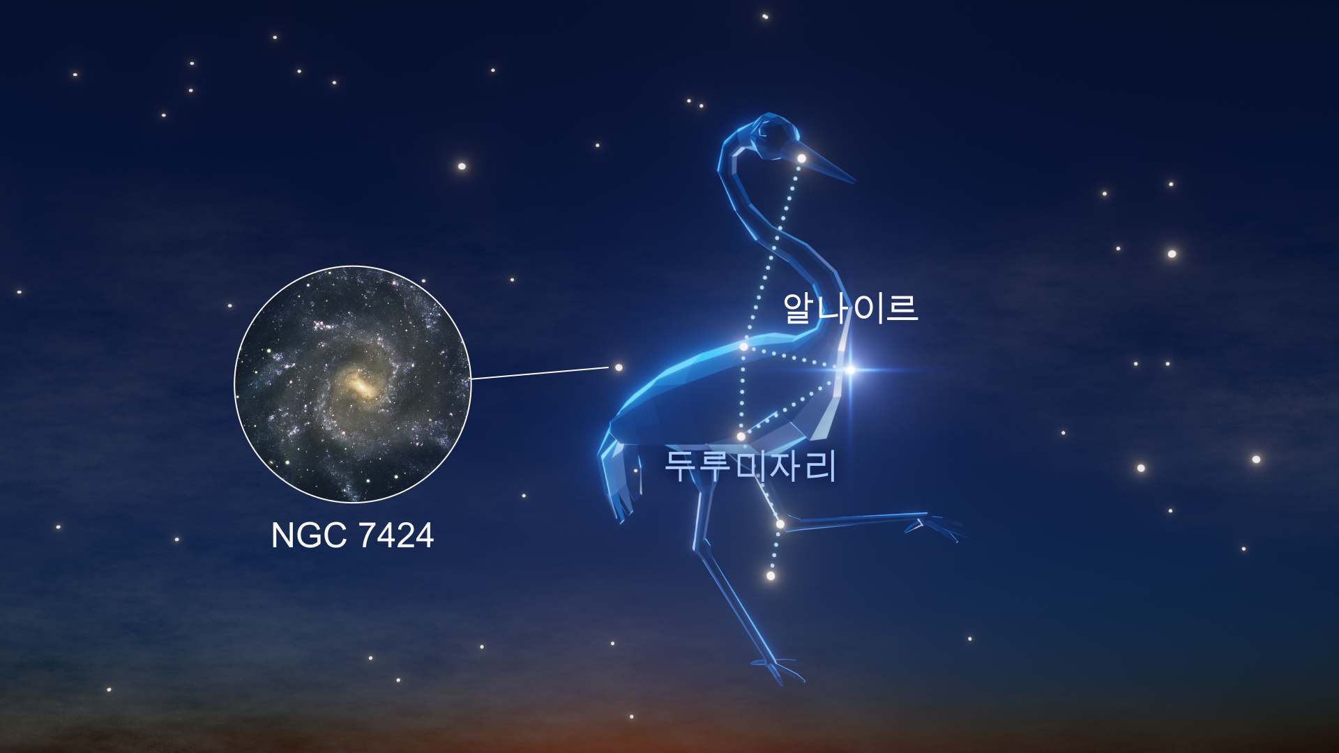 남반구: 두루미는 저녁 하늘 높은 곳에 있어 어두운 환경에서도 쉽게 추적할 수 있습니다.