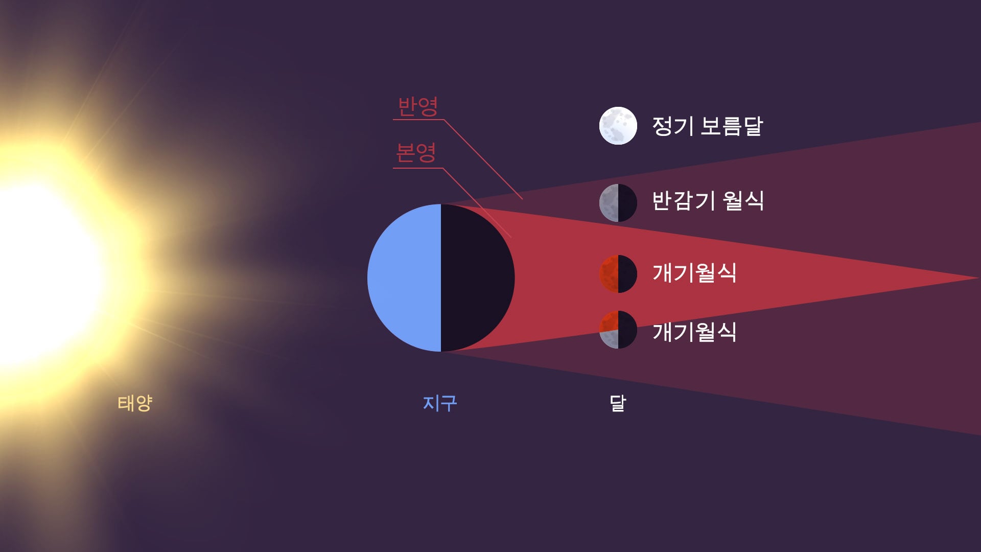 월식이 발생하기 위해서는, 태양, 지구, 그리고 달이 줄을 서야 합니다. 하지만, 달의 궤도면이 지구의 궤도면에 기울어져 있기 때문에, 때때로 그것들은 불완전하게 정렬됩니다. 그러므로 지구는 그림자의 가장 바깥쪽과 가장 밝은 부분인 반영로 태양이 달에 도달하는 것을 막습니다.