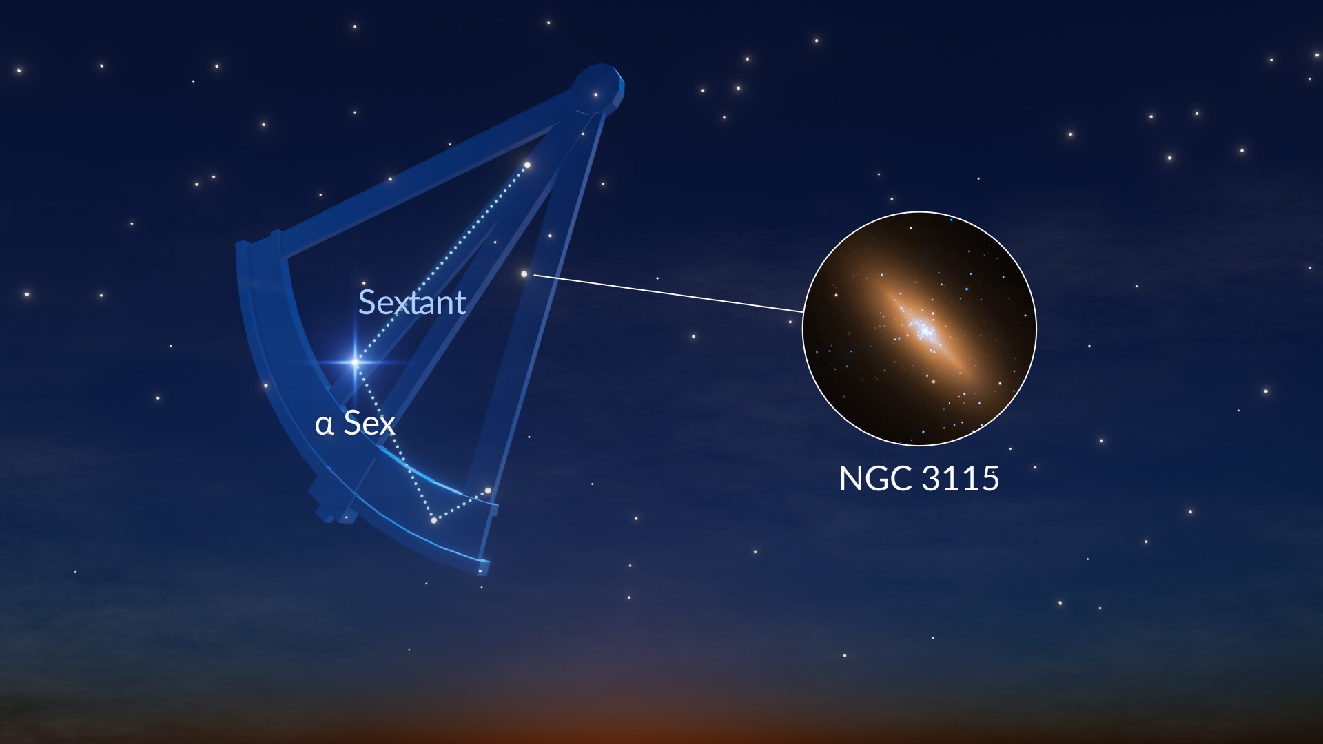 - Opvallend deep-sky-object: NGC 3115 (mag 9.9)