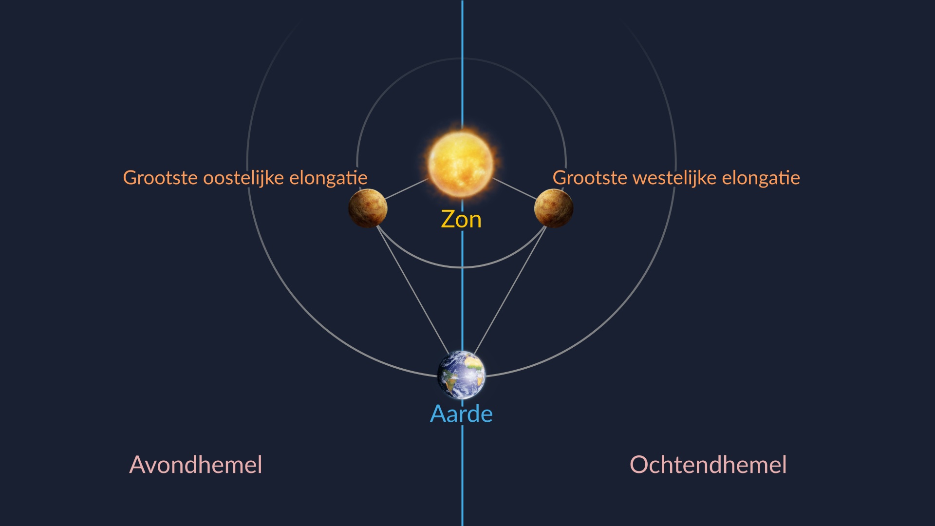 De grootste elongaties van Venus vinden ongeveer elke 9 maanden plaats. De grootste westerse elongatie wordt ook wel de ochtend genoemd, omdat Venus tijdens deze periode helder schijnt in de pre-dageraad hemel — vandaar de naam "morgenster". De grootste oostelijke elongatie wordt aangeduid als de avond, omdat Venus rond zonsondergang aan de hemel verschijnt.