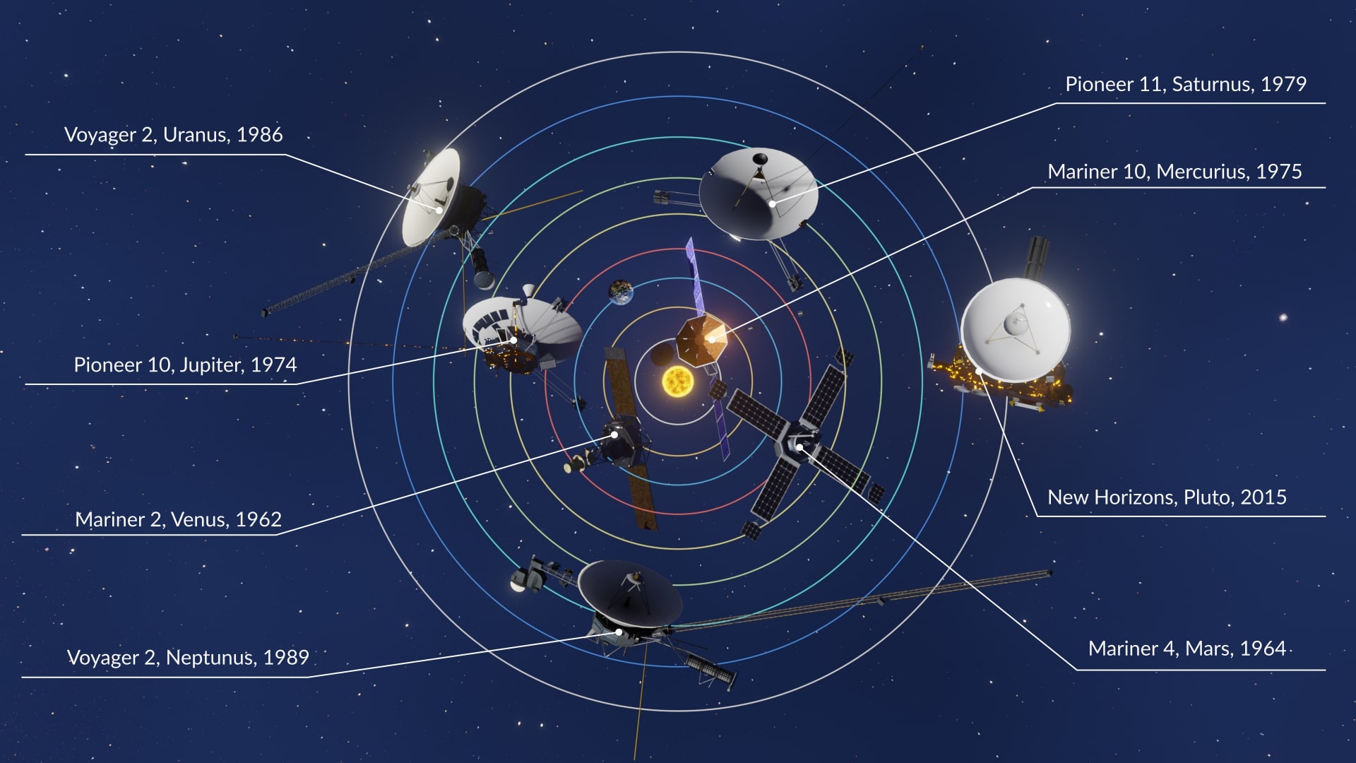 De mensheid verkent de ruimte al meer dan 60 jaar. Dat is niet zo lang (in relatie tot het universum). Gedurende deze periode hebben onze ruimtevaartuigen alle planeten van ons zonnestelsel bezocht, inclusief de dwergplaneten. Onze sondes zijn geland op Mars en Venus en draaien rond Mercurius, Jupiter, Saturnus en Ceres. NASA's Voyager 2 vloog langs Uranus en Neptunus en de New Horizons-sonde naderde Pluto.