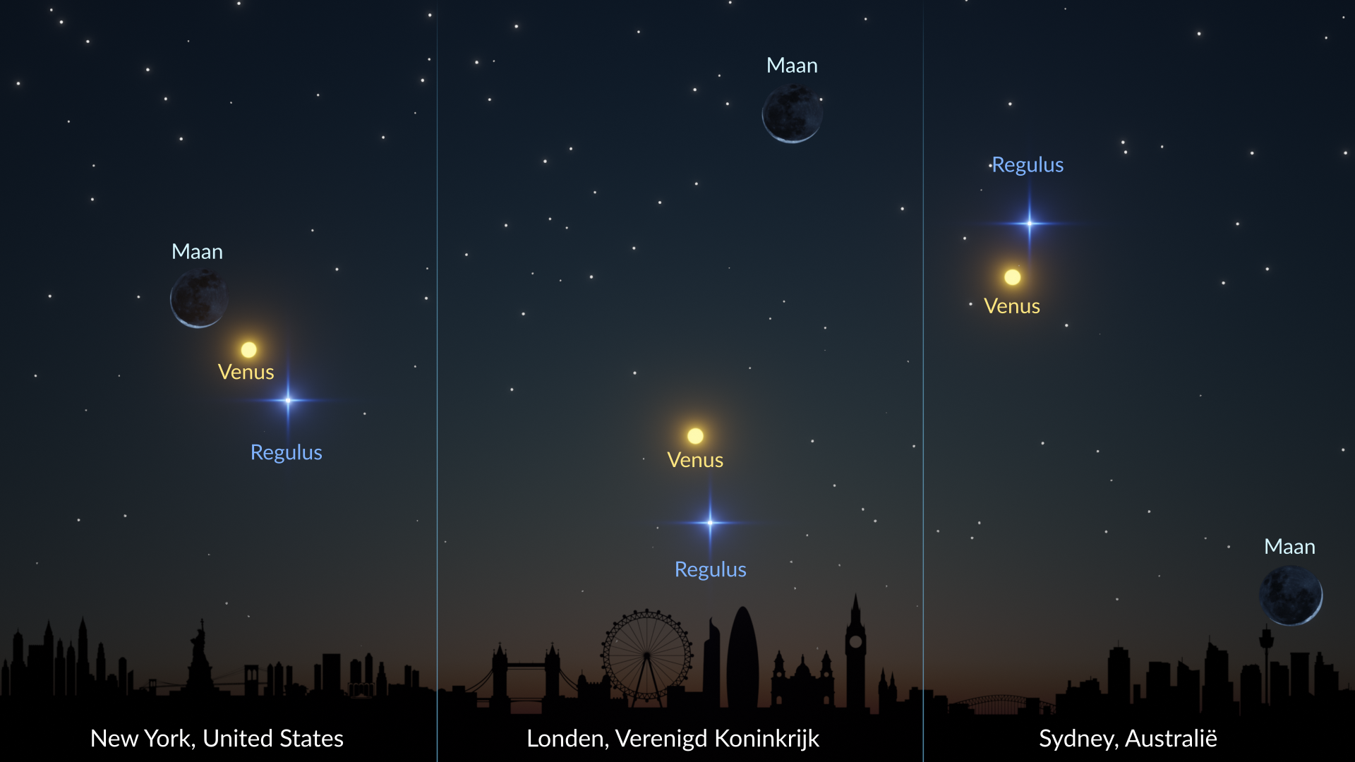 Wereldwijd zichtbaar: Maan, Venus en Regulus dicht bij elkaar