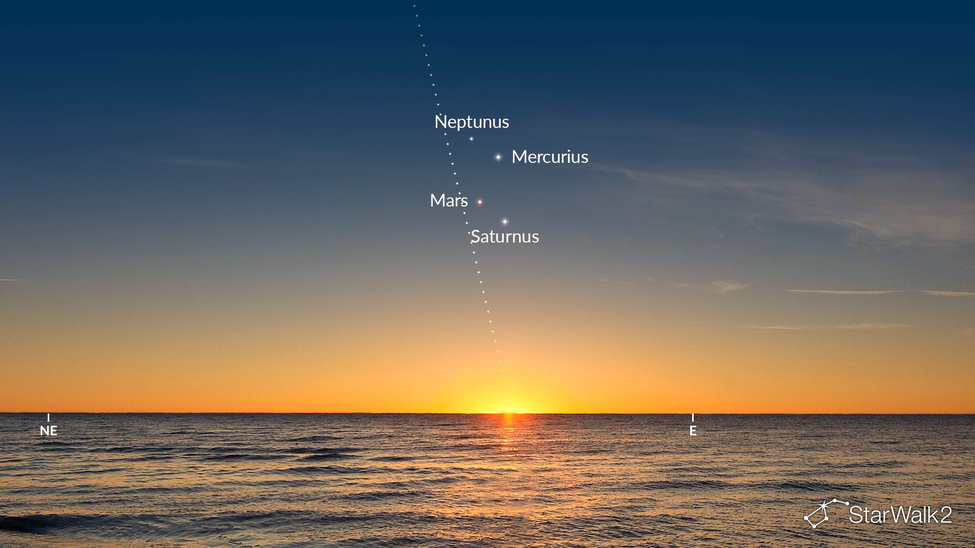 Niet echt. Om te beginnen heb je een verrekijker of telescoop nodig om Neptunus te zien — en zelfs dan kan hij wegvallen in de ochtendgloed. De andere drie planeten — Mercurius, Mars en Saturnus — zijn meestal helder genoeg voor het blote oog, maar hun nabijheid tot de zon maakt ze vooral op het noordelijk halfrond lastig waarneembaar.