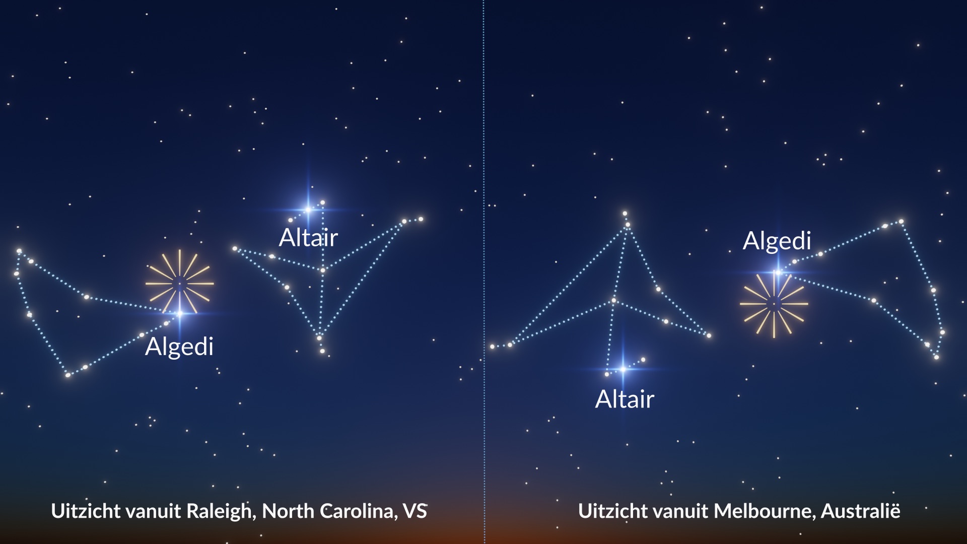 De Alpha Capricorniden zijn ideaal te bekijken vanuit Australië, waar het radiant in het sterrenbeeld Steenbok hoog aan de hemel staat. Van Sydney tot Melbourne, en in Queensland, Zuid-Australië en West-Australië, zijn de kijkomstandigheden uitstekend — zorg er alleen voor dat je weg bent van stadslicht.