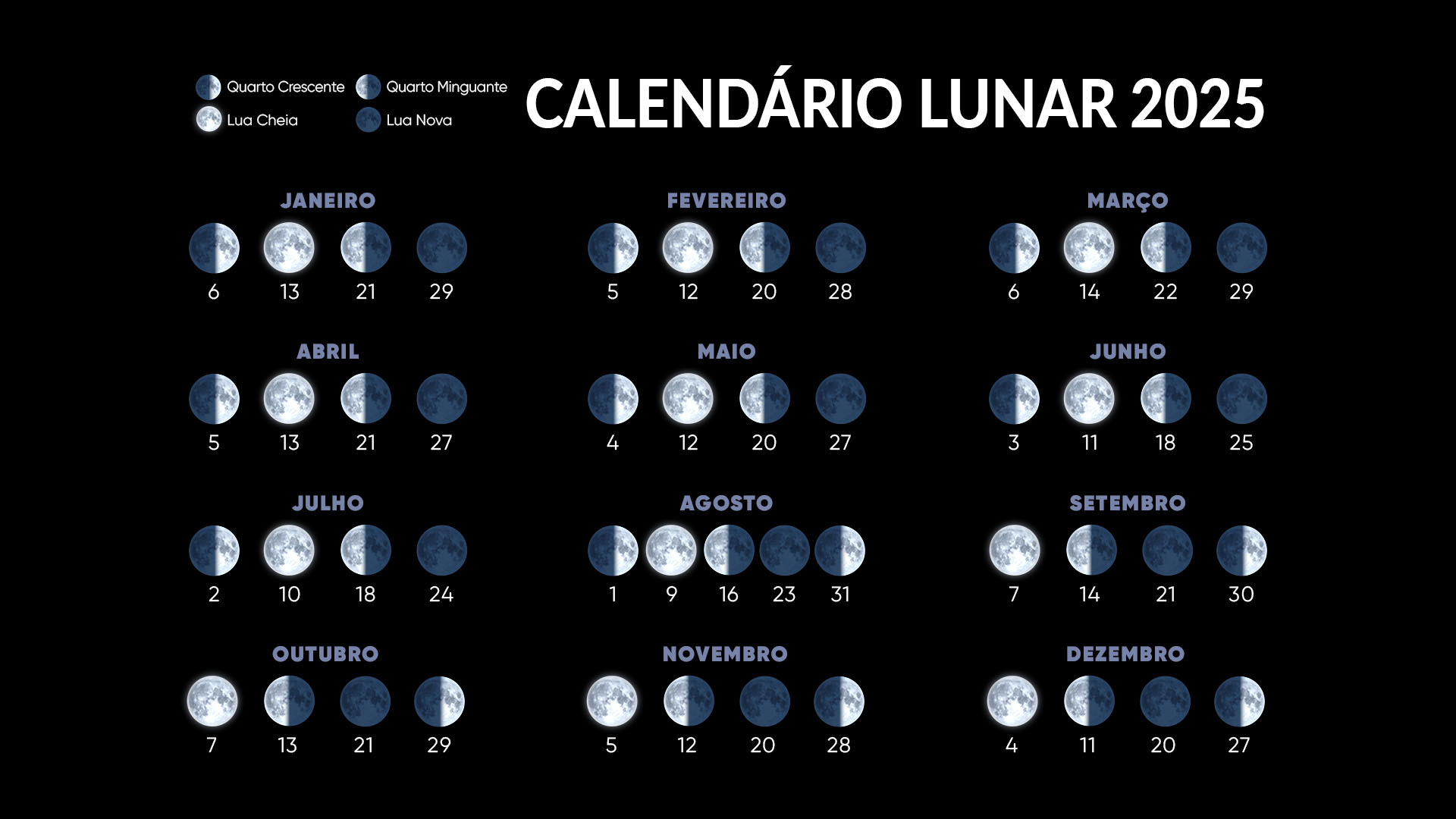 - Calendário da Lua Cheia de 2025: para resumir