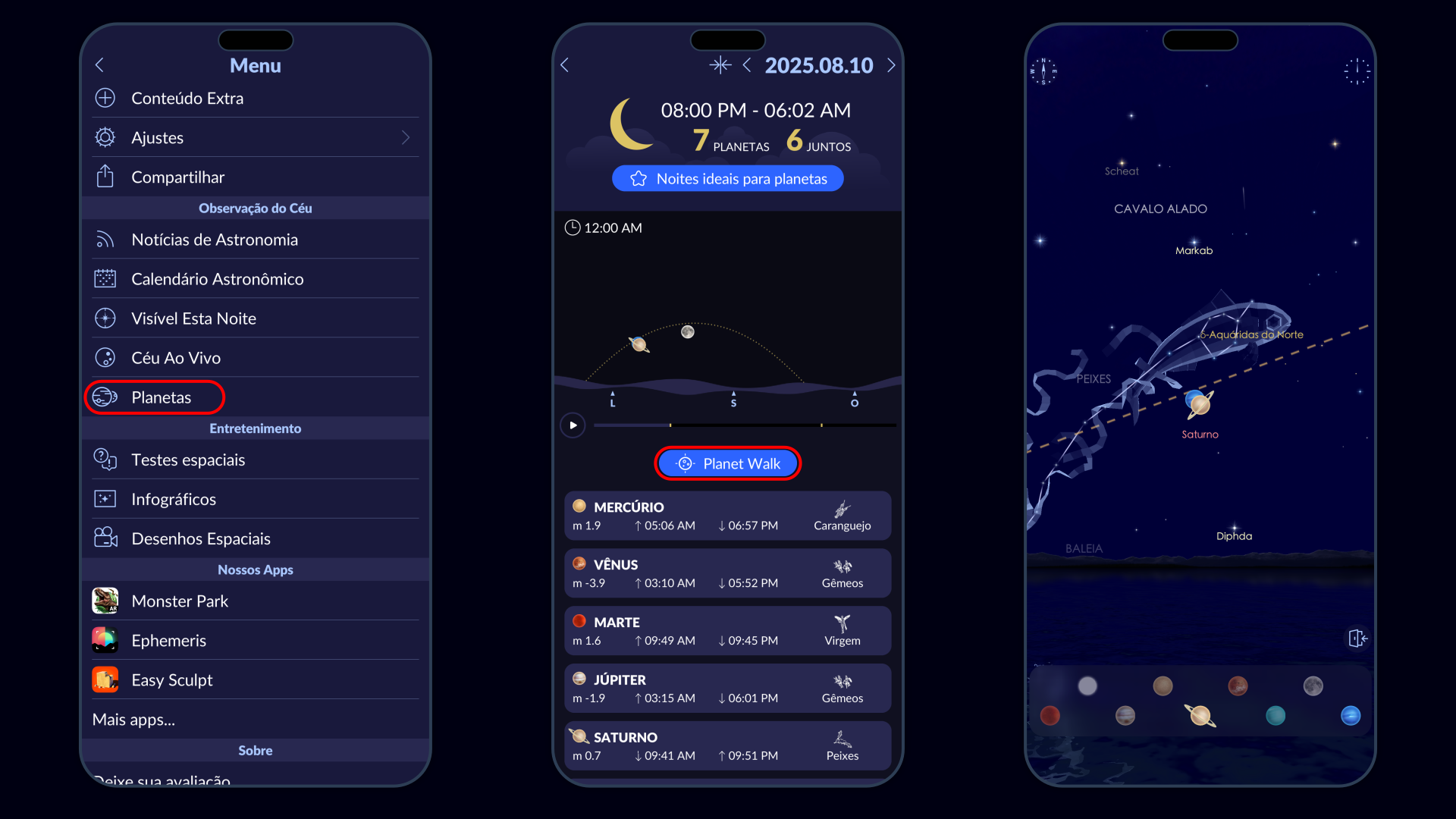Veja a visibilidade dos planetas em agosto de 2025. Quer saber onde encontrar os planetas a qualquer hora, no seu local? Use o app gratuito Star Walk 2.