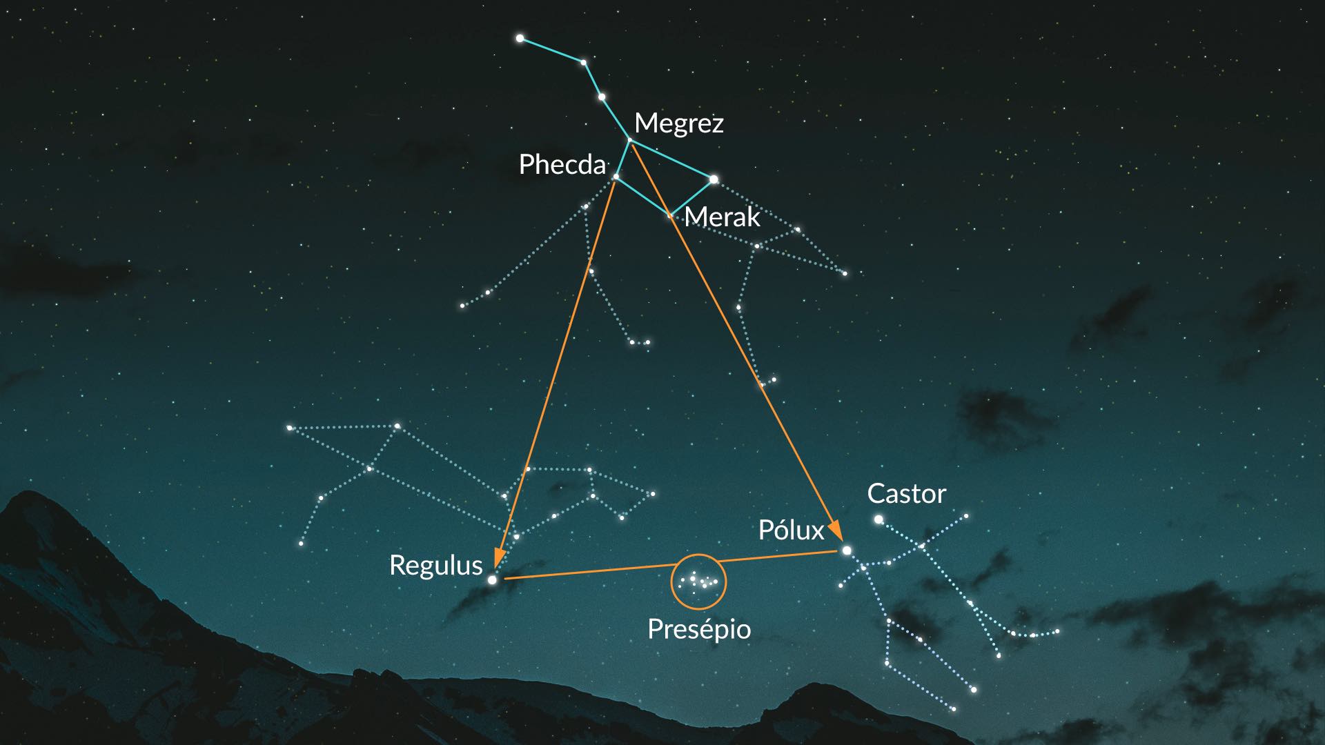 A maneira mais tradicional de encontrar o Messier 44 é navegar pelas estrelas vizinhas brilhantes. Aqui está como fazer isso: