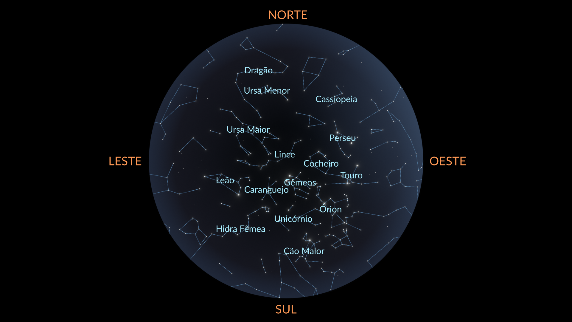No Hemisfério Norte, favoritos do inverno como Cão Menor e Câncer ficam bem posicionados à noite, enquanto constelações fracas como Lince sobem mais no céu, ficando mais fáceis de observar.