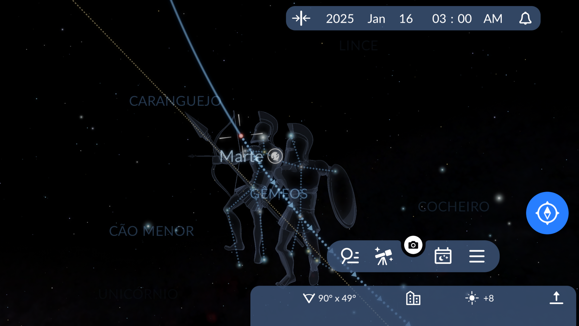 - O aplicativo mostrará a localização atual de Marte no céu.