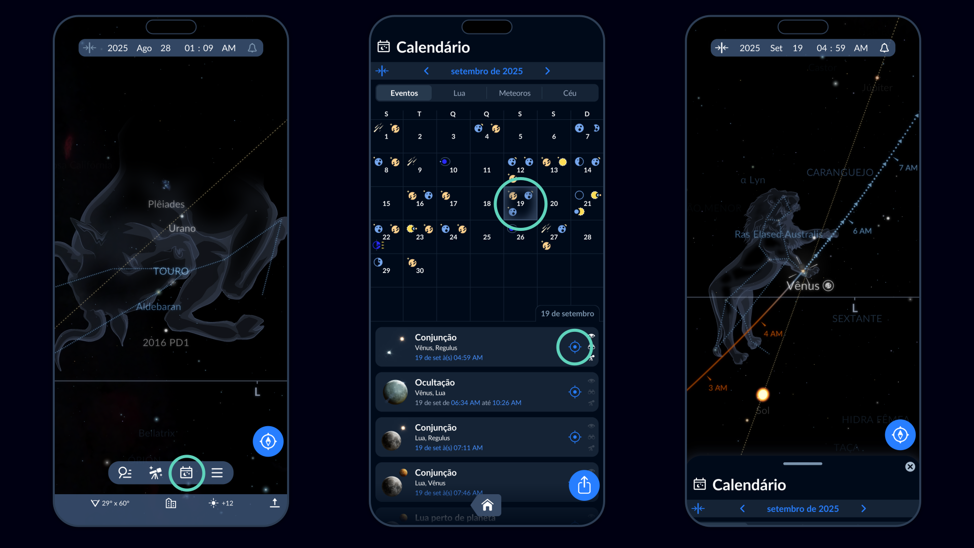 Um raro alinhamento celestial ocorrerá em 19 de setembro de 2025: a Lua, Vênus e Régulo brilharão muito próximos no céu da manhã, com uma ocultação lunar de Vênus visível de algumas regiões. Neste guia mostramos o que ver, onde olhar e como capturar o momento — com a ajuda do Sky Tonight app para planejar tudo.