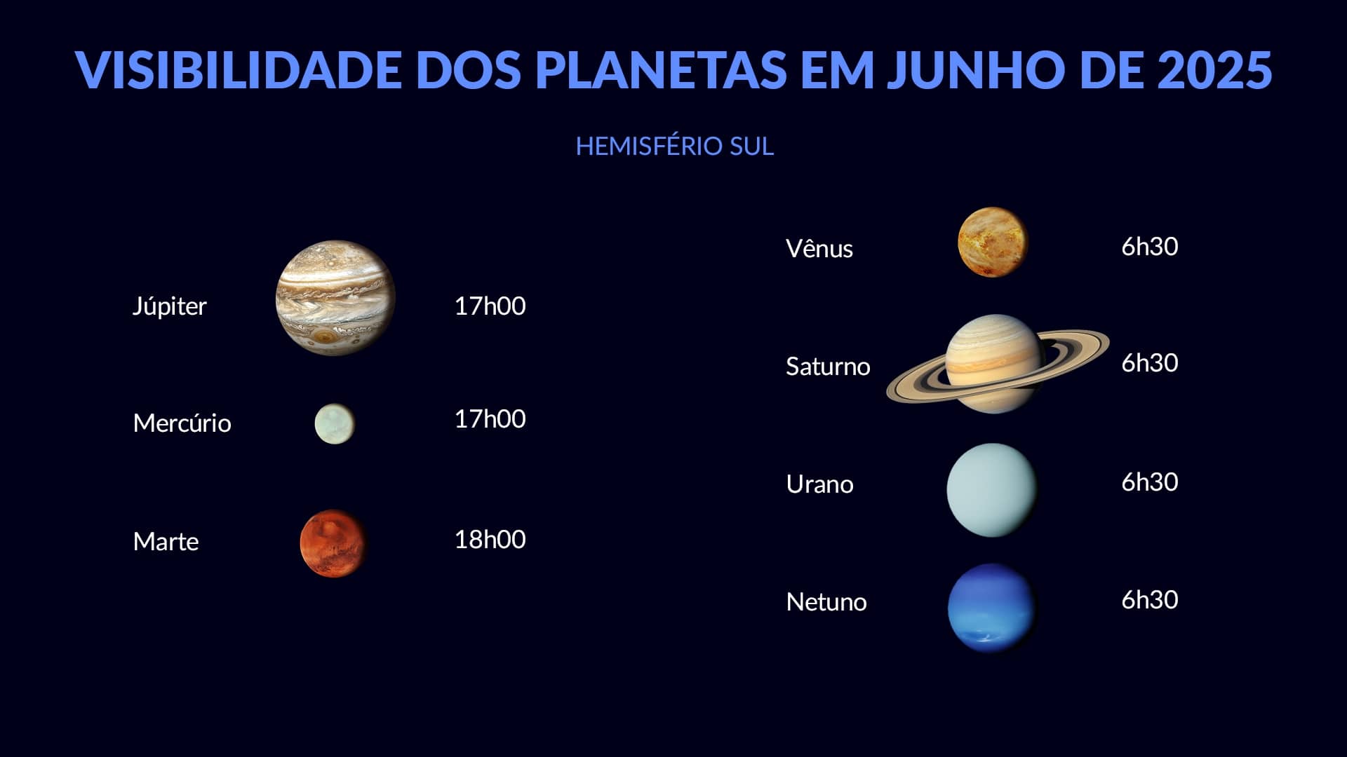 Planetas visíveis no Hemisfério Sul – junho de 2025