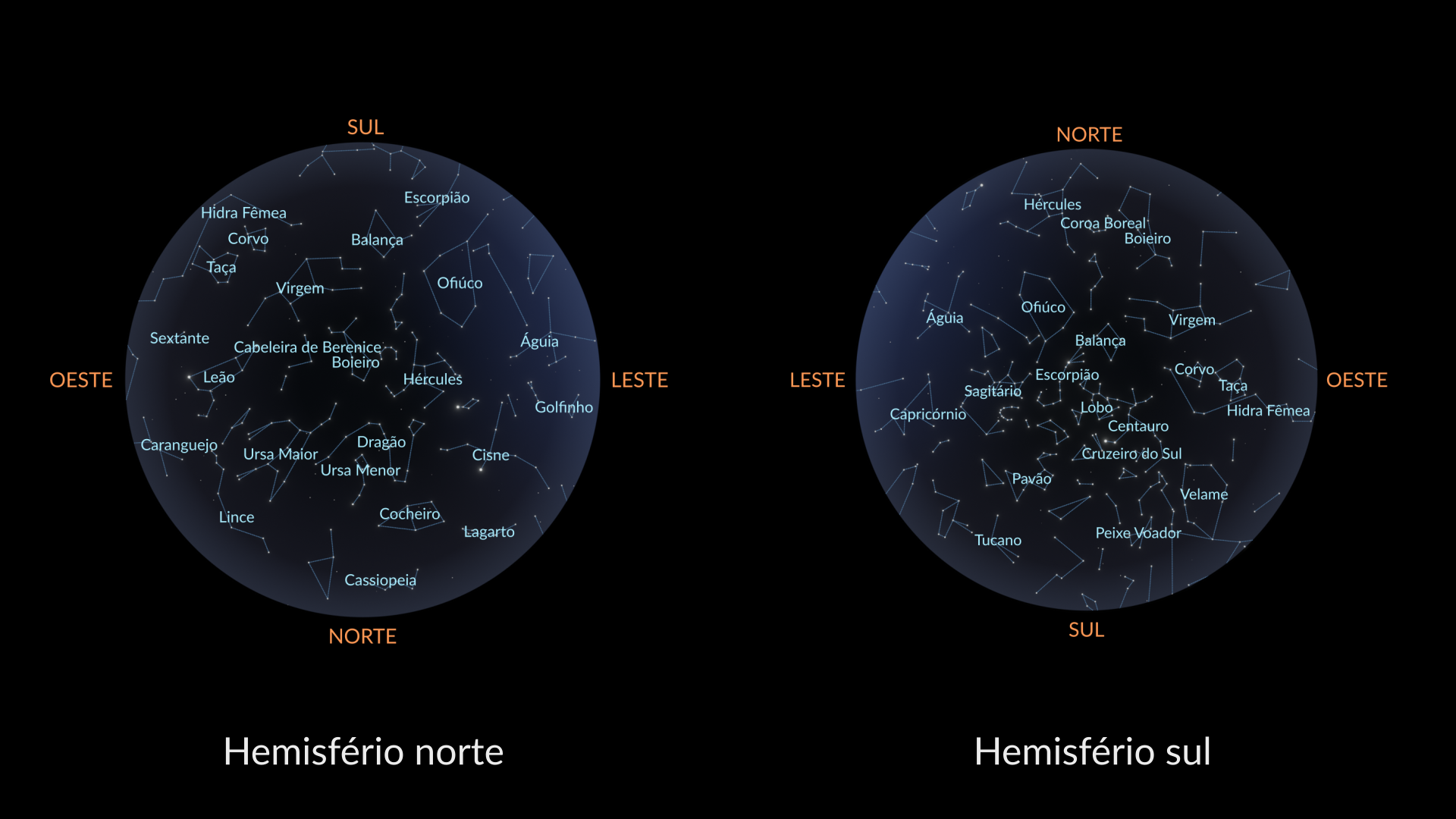 Observe que as datas dos eventos são fornecidas em GMT (Horário de Greenwich), portanto, podem variar conforme o fuso horário. Para saber quando exatamente o evento será visível da sua localização, use o app Sky Tonight.