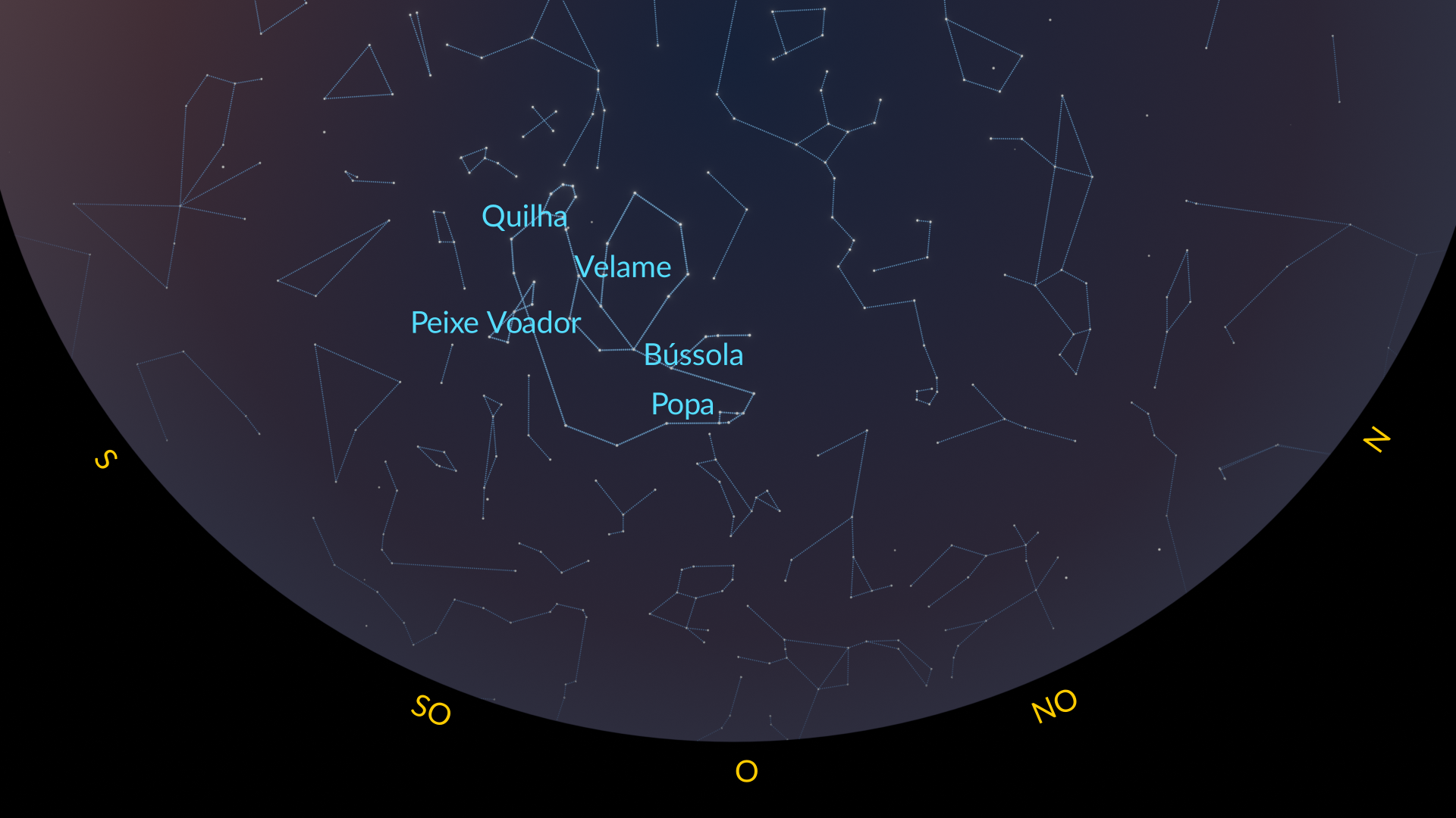 No Hemisfério Sul, março oferece excelentes vistas de Carina, Popa, Bússola, Velas e Peixe-voador. Essas constelações sobem alto no céu e são melhor observadas a partir de latitudes austrais. Observadores também podem encontrar Câncer e Cão Menor mais próximos do horizonte norte.