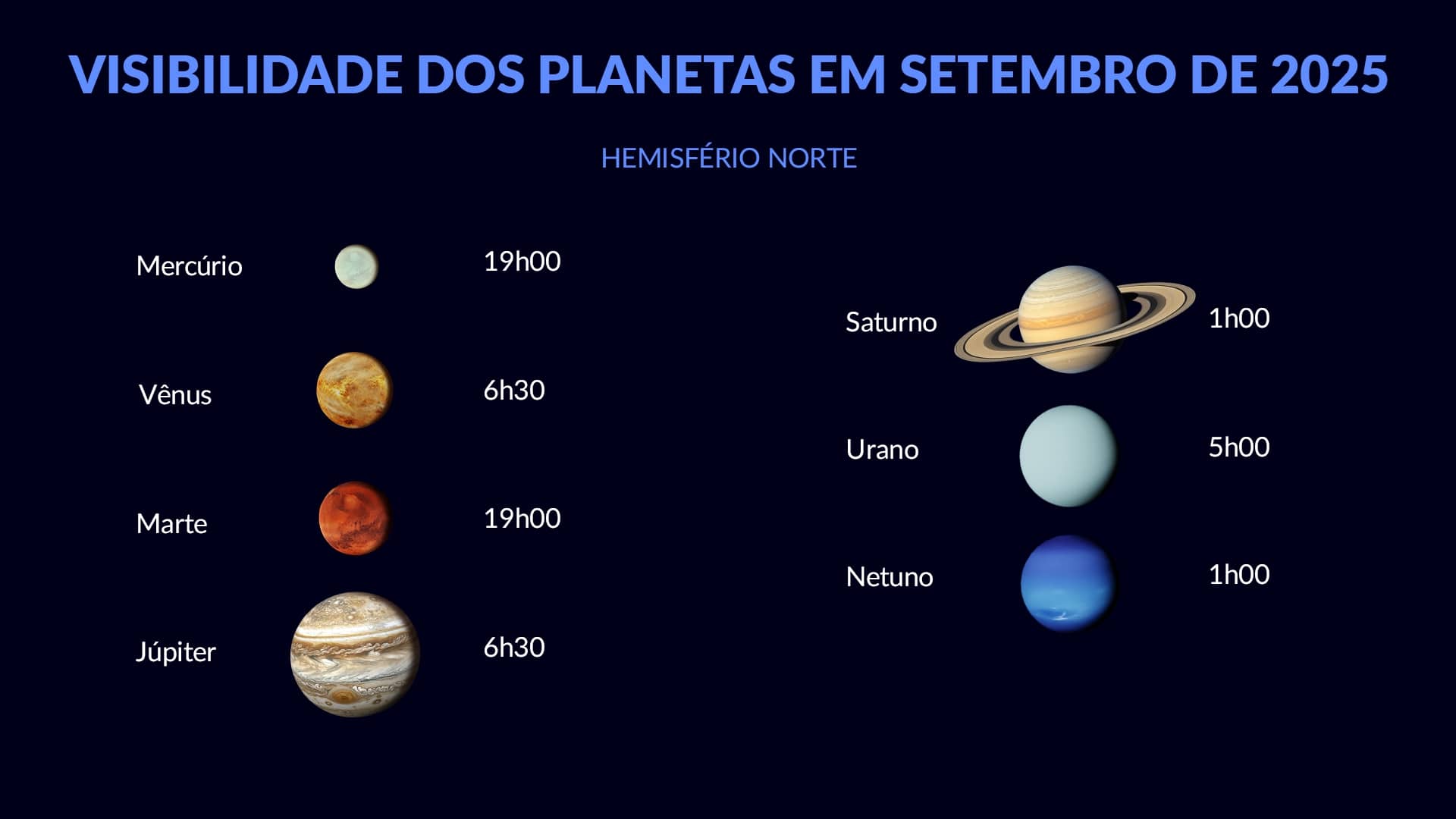 Planetas Visíveis no Hemisfério Norte – Setembro de 2025