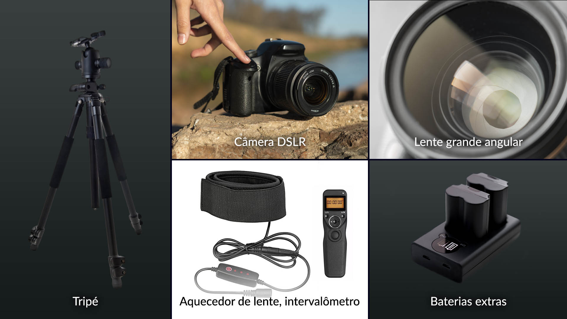 - Leve baterias extras — longas exposições consomem muita bateria, especialmente no frio.