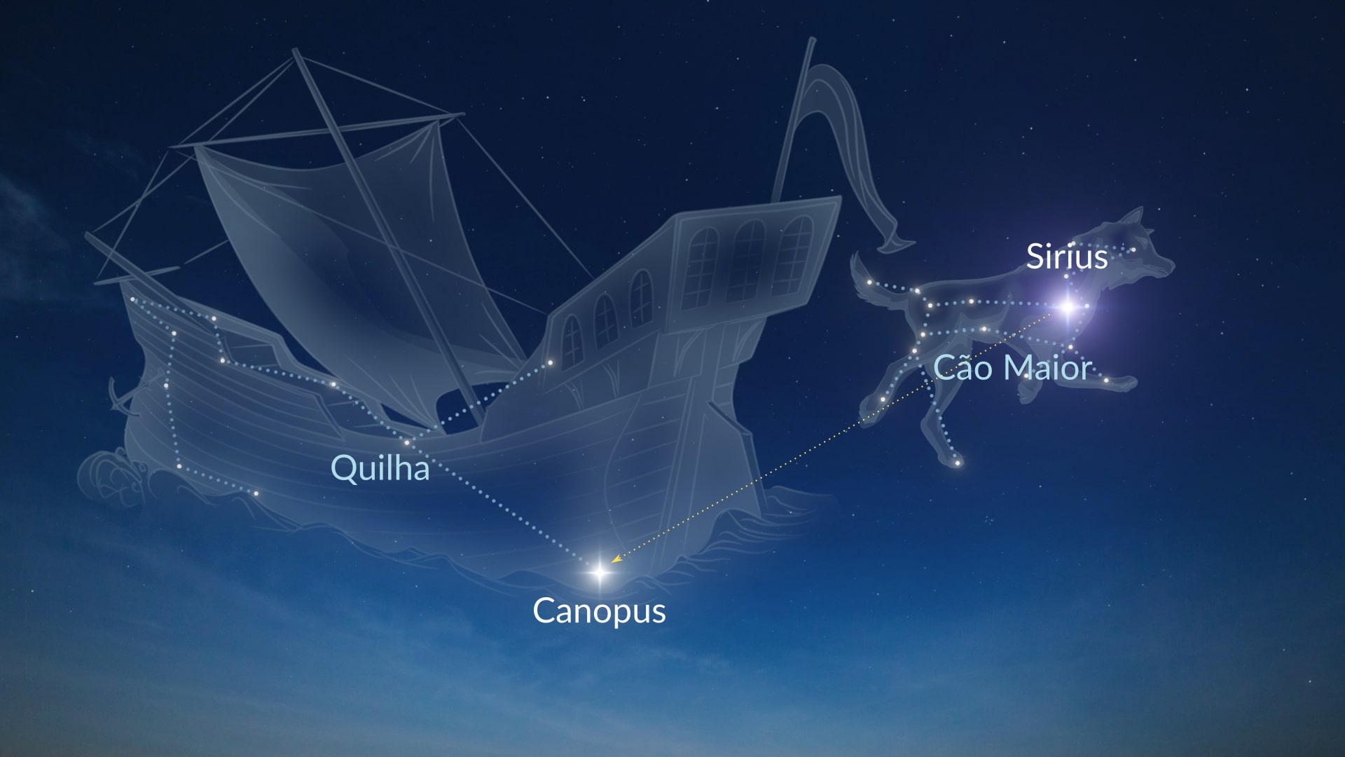 - Segunda estrela mais brilhante: Sirius — a estrela mais brilhante do céu noturno