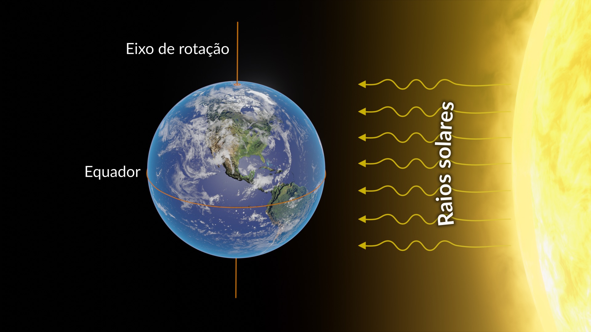 O eixo de rotação do nosso planeta está inclinado 23,4 graus. Isto significa que os hemisférios Norte e Sul da Terra recebem quantidades desiguais de luz solar durante a maior parte do ano. É esta inclinação axial que explica a existência das estações do ano.